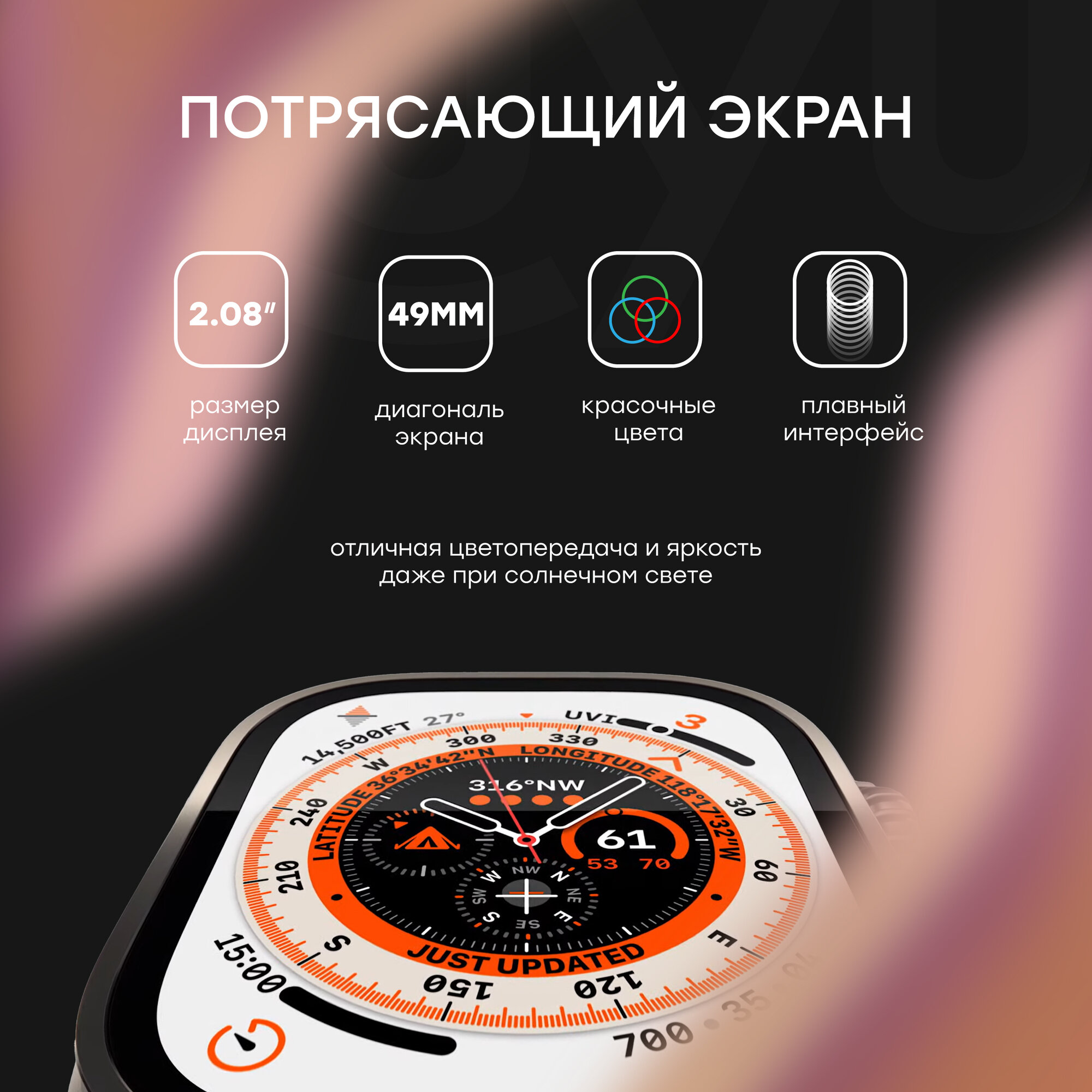 Умные часы Smart Watch Ultra 2, мужские, женские с влагозащитой / Умные часы, дисплей 49 mm интересное: