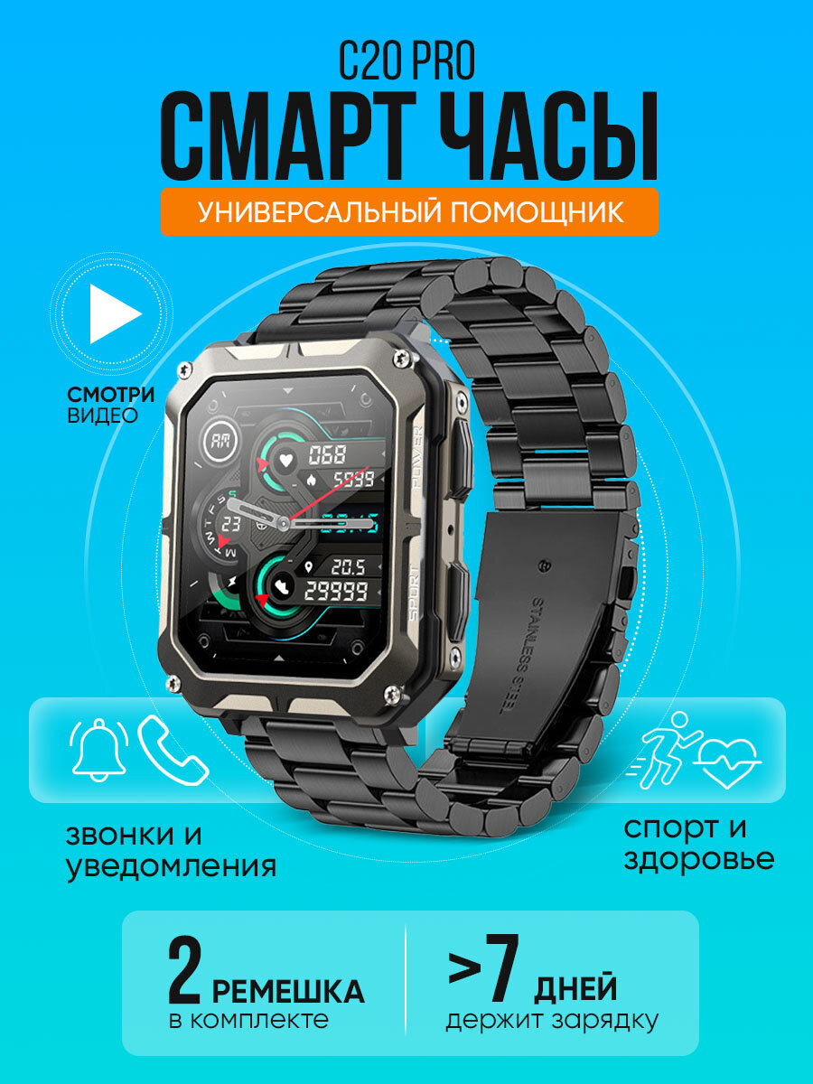 Купить Умные противоударные смарт-часы C20 Pro Black