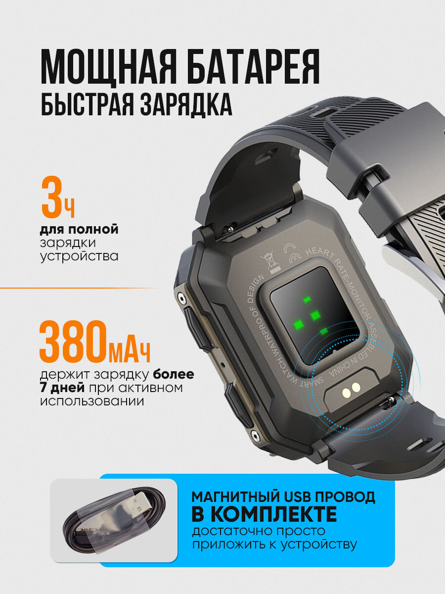 | Особенности | USB / воспроизведение аудио / магнитная зарядка / поиск смартфона / поиск часов / фонарик |