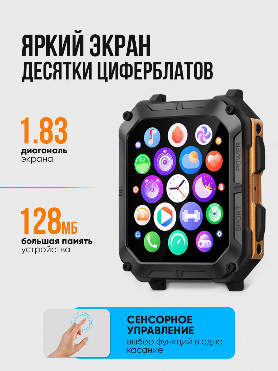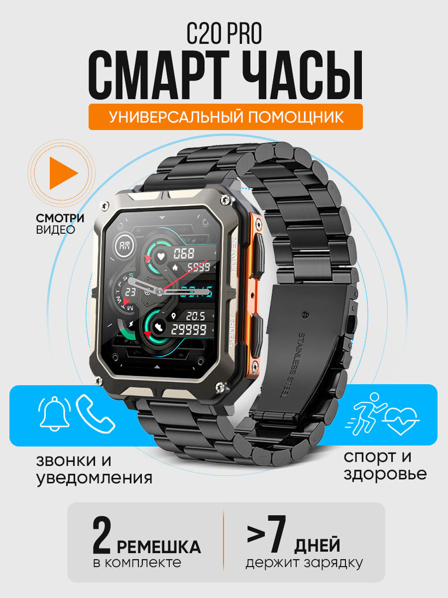 Умные противоударные смарт-часы C20 Pro Orange интересное: