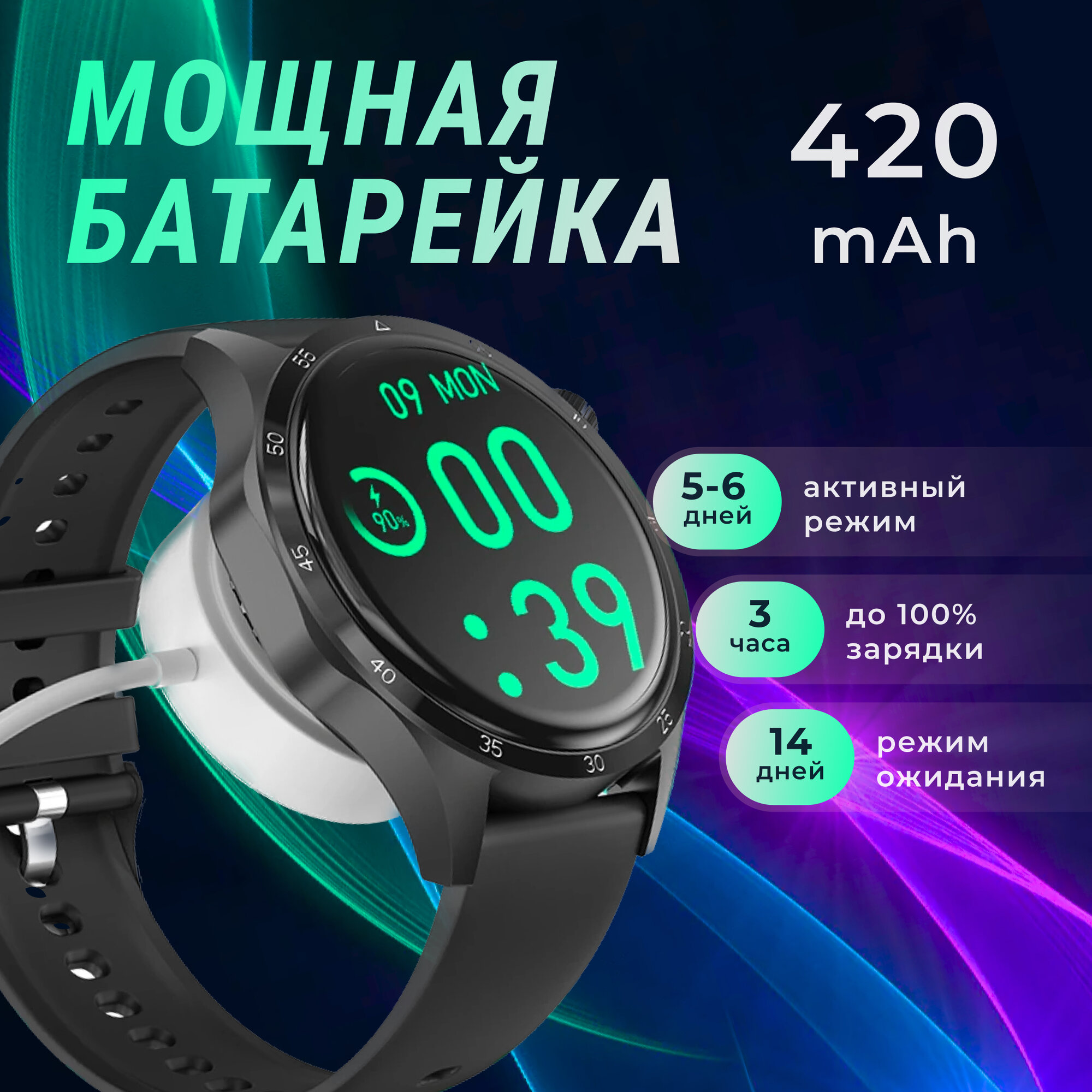 | Особенности | беспроводная зарядка / магнитная зарядка / поиск смартфона / поиск часов |