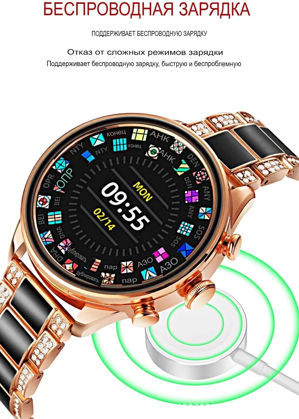 Смарт часы Gen 11 круглые, женские Bluetooth, iOS, Android, черные интересное: