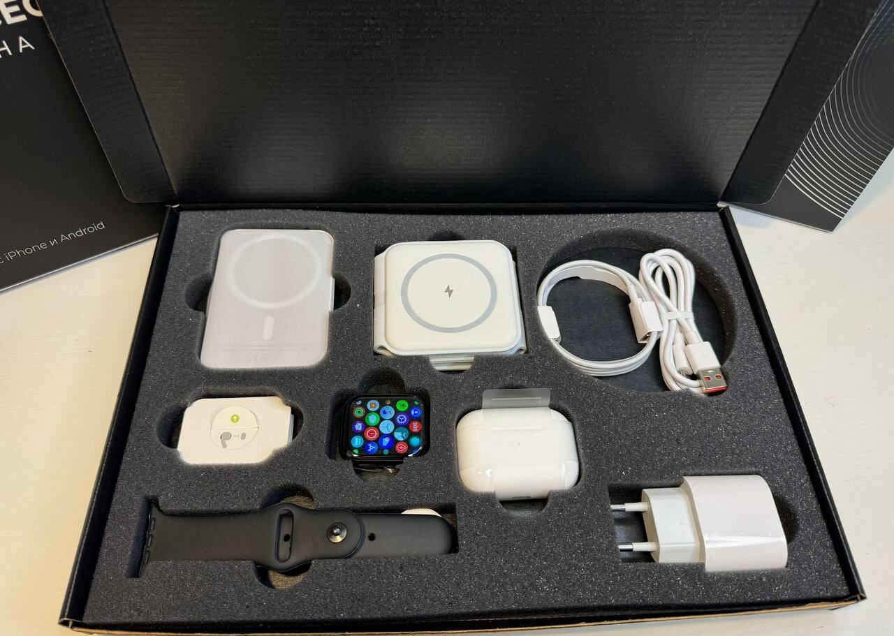 СохранитьНабор смарт часы watch series 8 + беспроводные наушники A.Pods Pro + внешний аккумулятор и беспроводная зарядка MagSafe| Совместим с iOS и Android (черный ремешок) интересное: