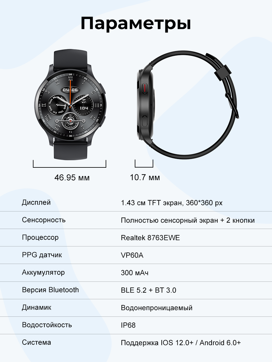 | Особенности | воспроизведение аудио / магнитная зарядка / поиск смартфона / поиск часов / фонарик |