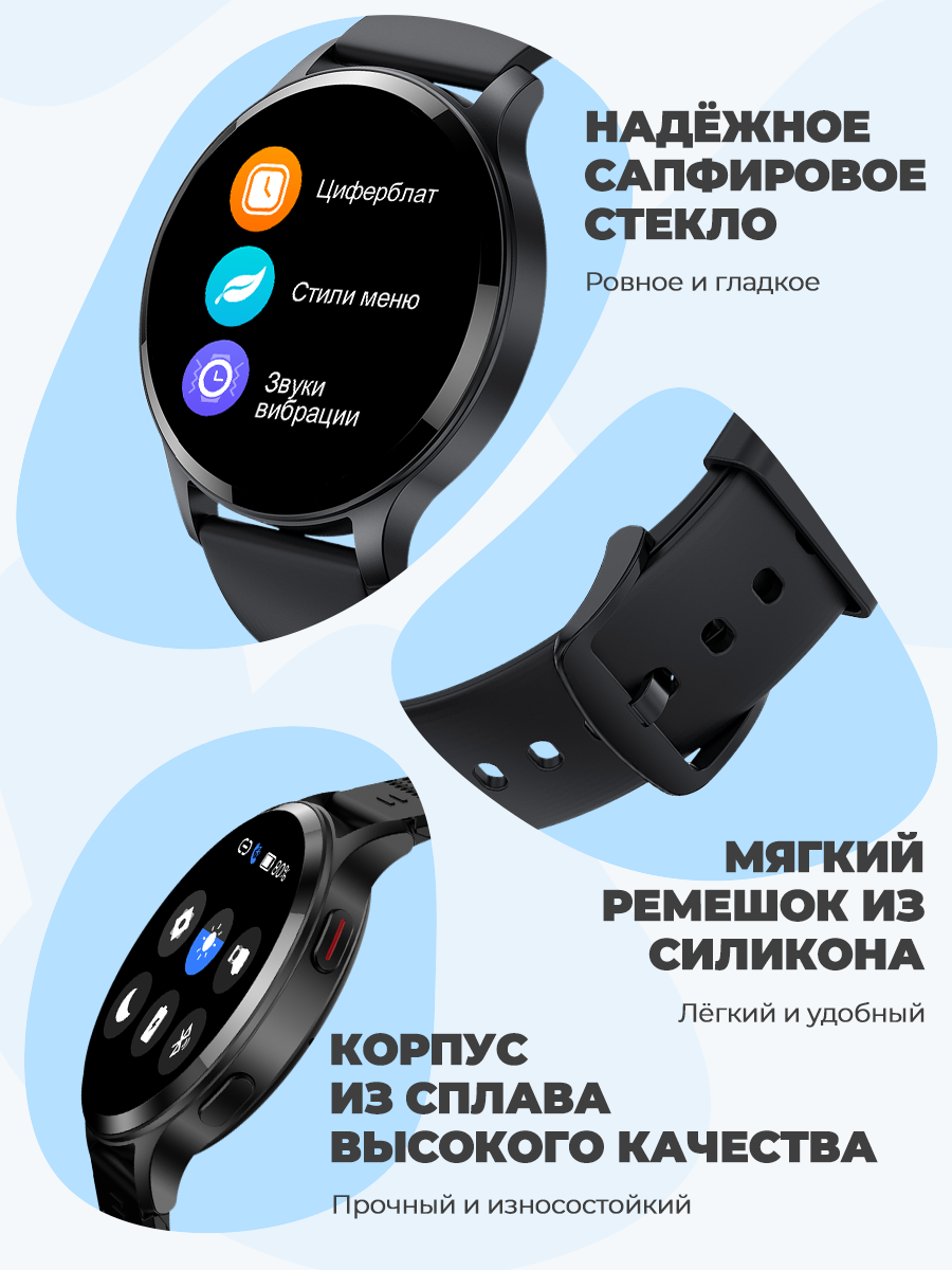 Смарт-часы умные наручные Double A Smart Watch 77 женские и мужские, круглые, водонепроницаемые, черные интересное: