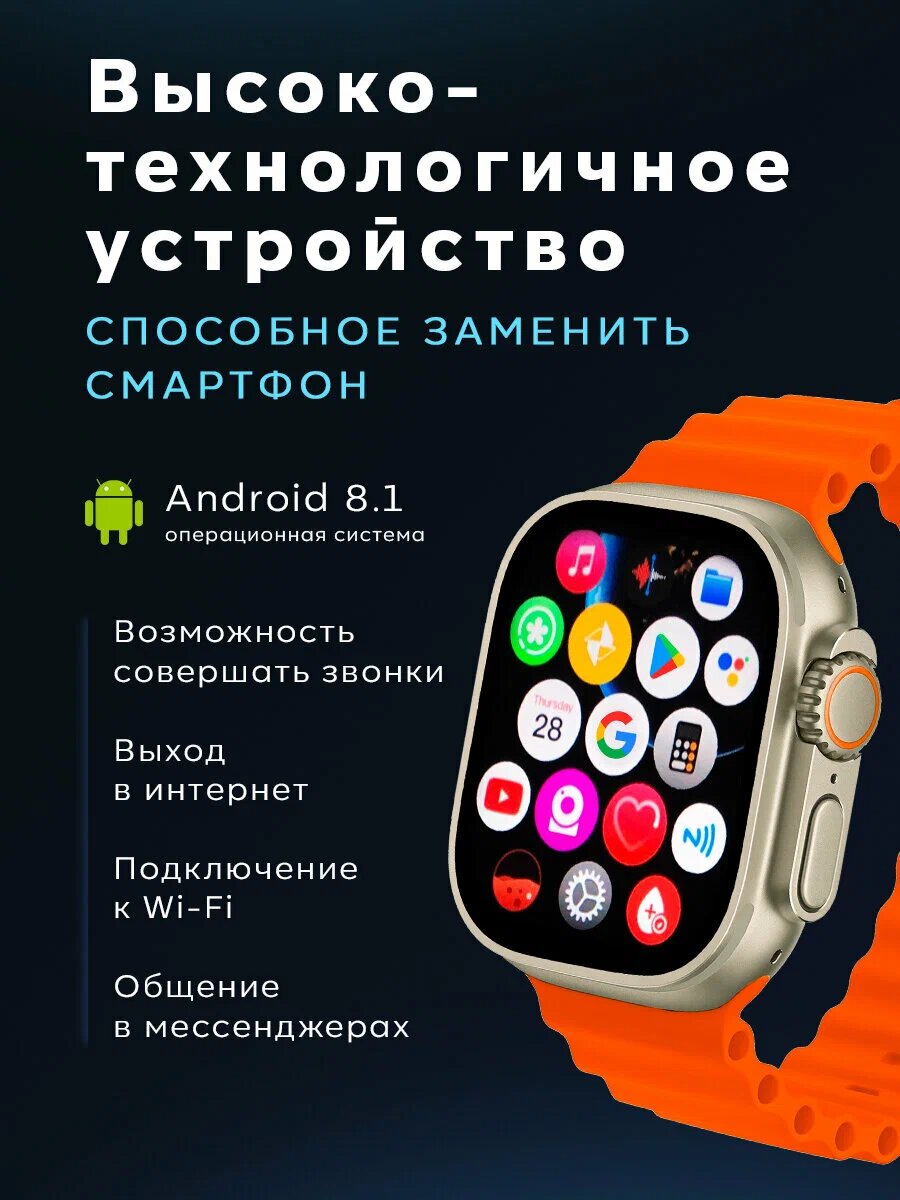 Умные часы X9 Call на Android с сим-картой, WI-FI, 4G, звонки, Золото интересное: