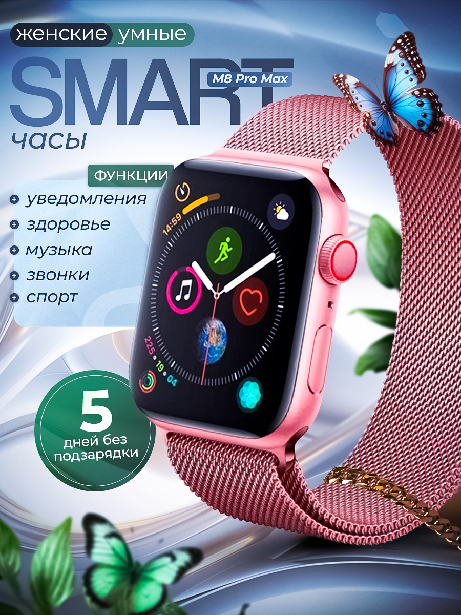 Смарт часы женские умные M8 ProMax Watch 8 смарт с металлическим ремешком спортивные унисекс интересное: