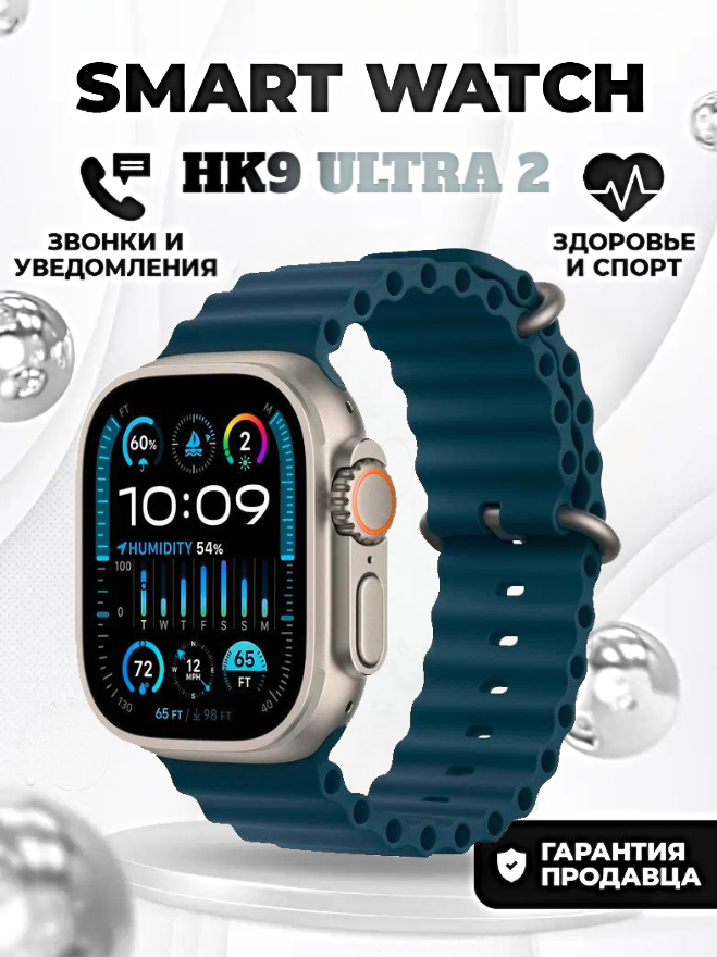 Смарт часы HK9 ULTRA 2 Умные часы PREMIUM Smart Watch AMOLED, iOS, Android, ChatGPT, Bluetooth звонки, Уведомления, Темно-синий