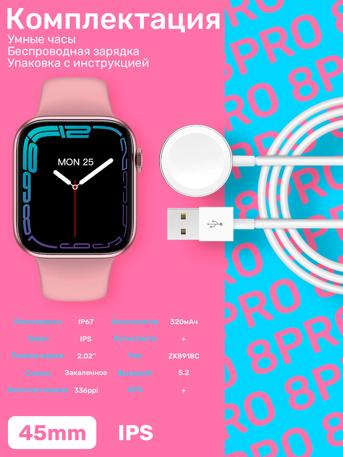 Смарт-часы Smart Watch 8 Pro, 45mm, розовые интересное:
