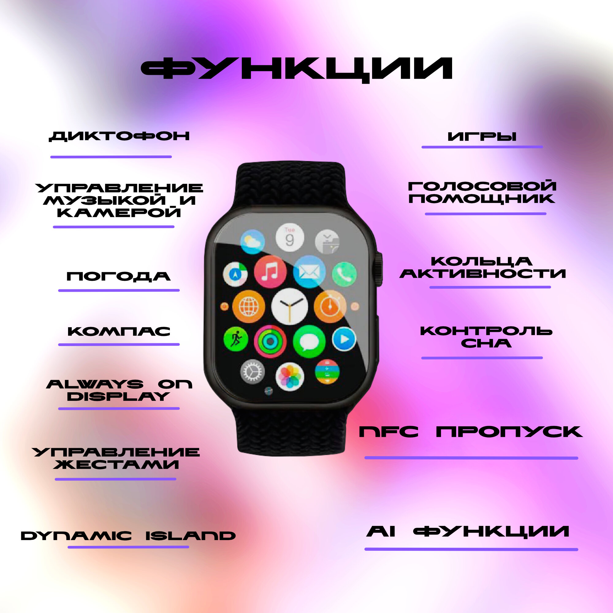 | Мониторинг | акселерометр, калорий, пульса, сна, тонометр, уровня кислорода в крови, уровня стресса, физической активности |