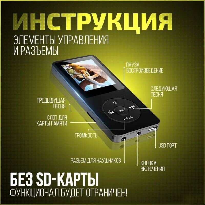 Беспроводной MP3-плеер 64 ГБ с Bluetooth, наушниками, экраном и FM-радио интересное: