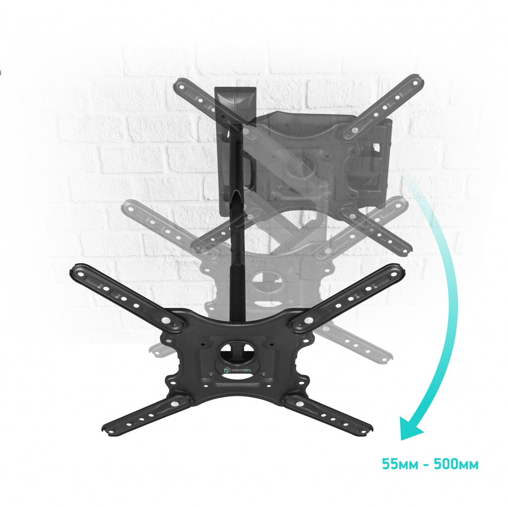 Кронштейн Onkron M4, для ТВ, наклонно-поворотный, 32"-65", 55-500 мм от стены, черный 9299147 .