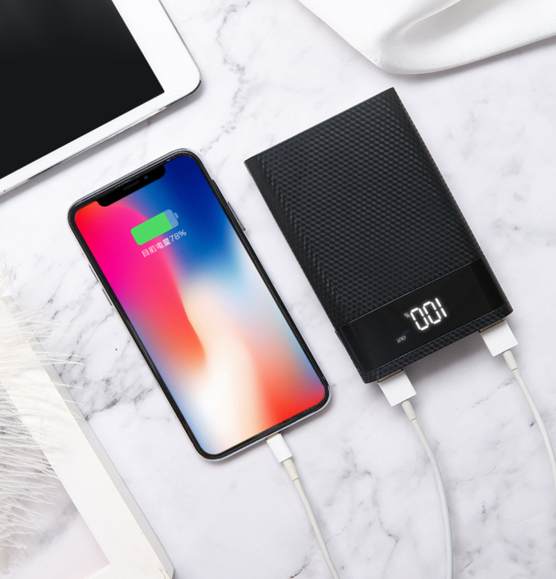 | Особенности | зарядка двух устройств / индикатор заряда / фонарик |