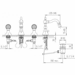 ATLANTIS-NOSTALGIA-BBS2-01 Смеситель для биде на три отверстия, хром