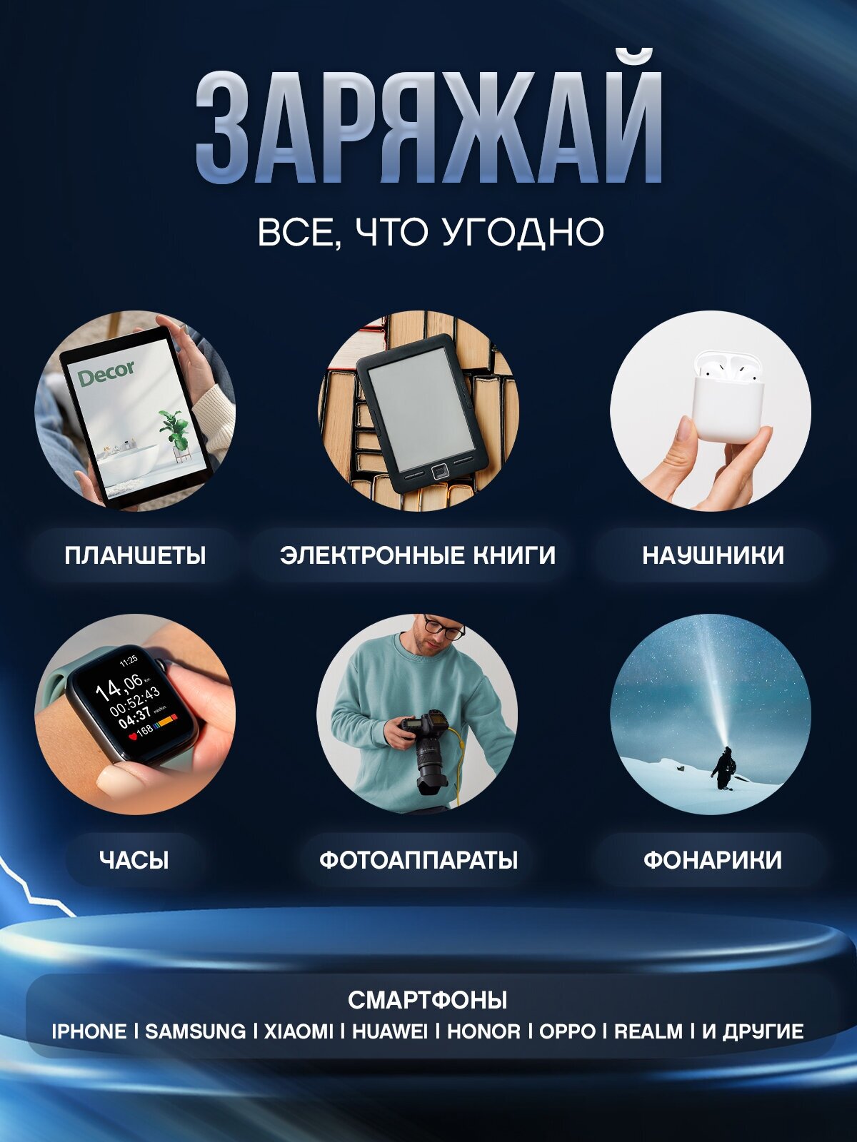 | Выходные разъемы | Lightning / USB Type-A / USB Type-C / micro USB |