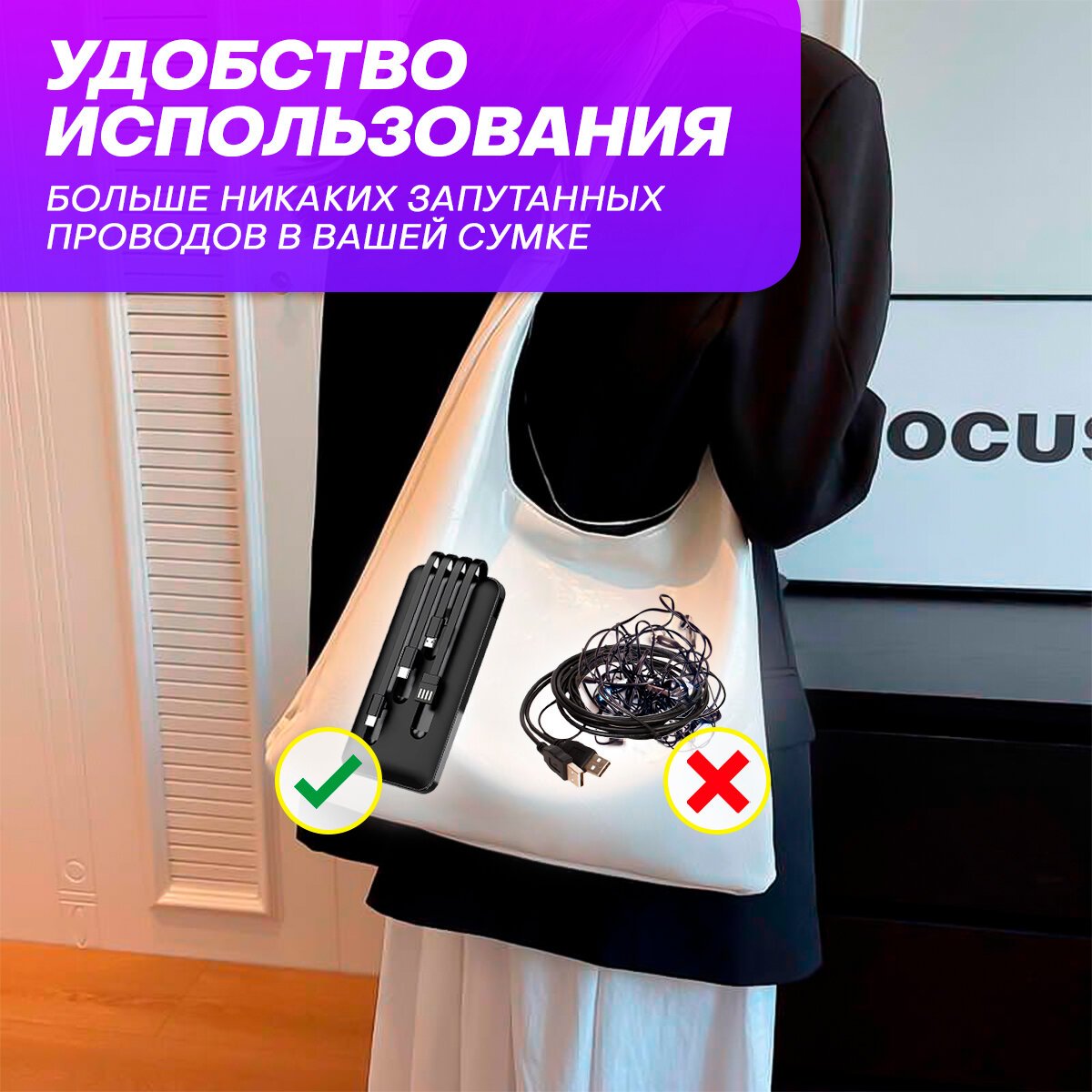 повербанк для айфон и андроид с встроенными кабелями