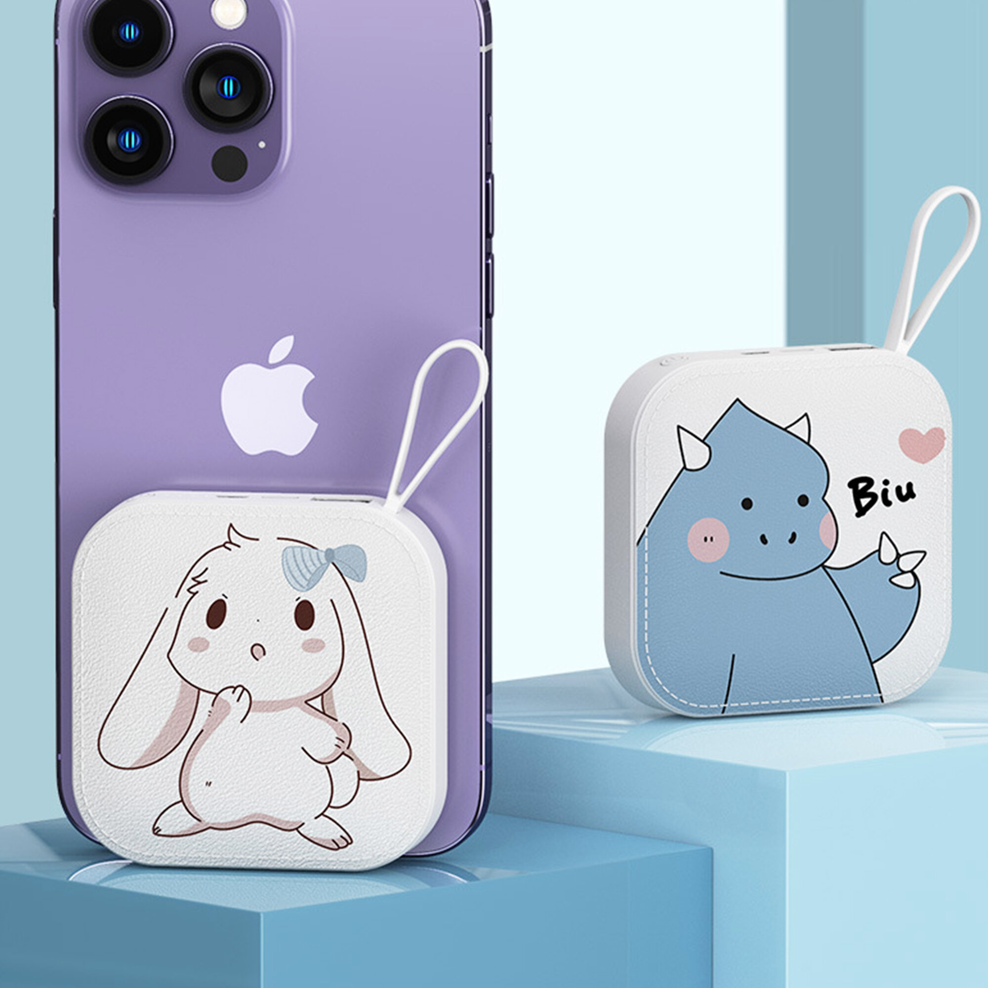 Повербанк с картинкой аниме Динозаврик, внешний аккумулятор детский, 10000 мА·ч, белый