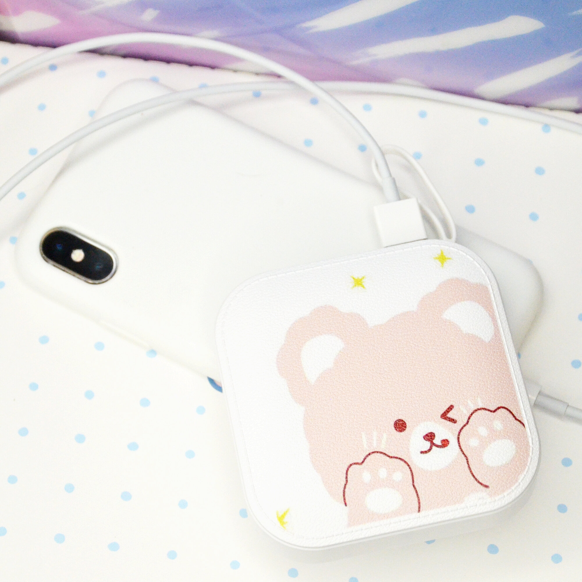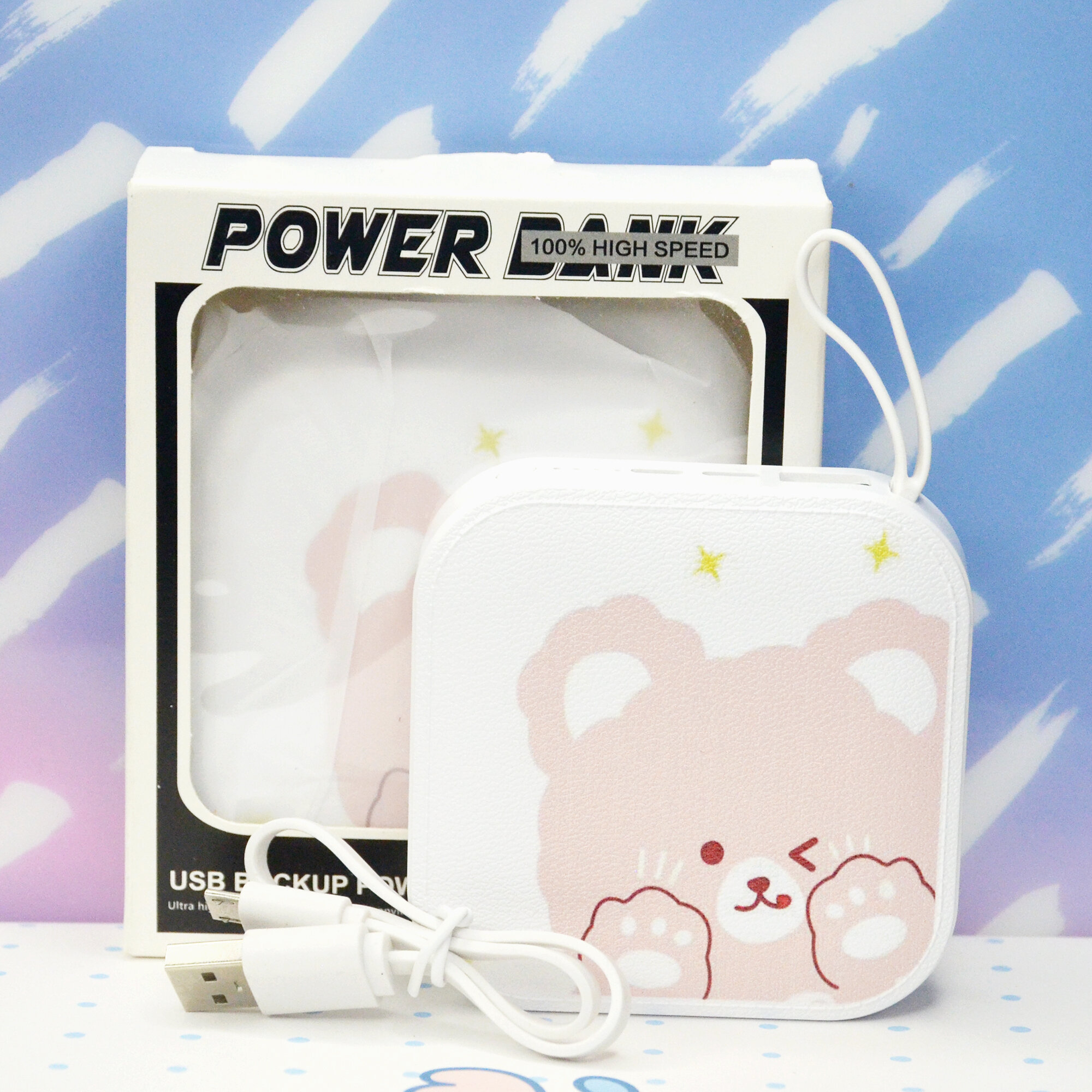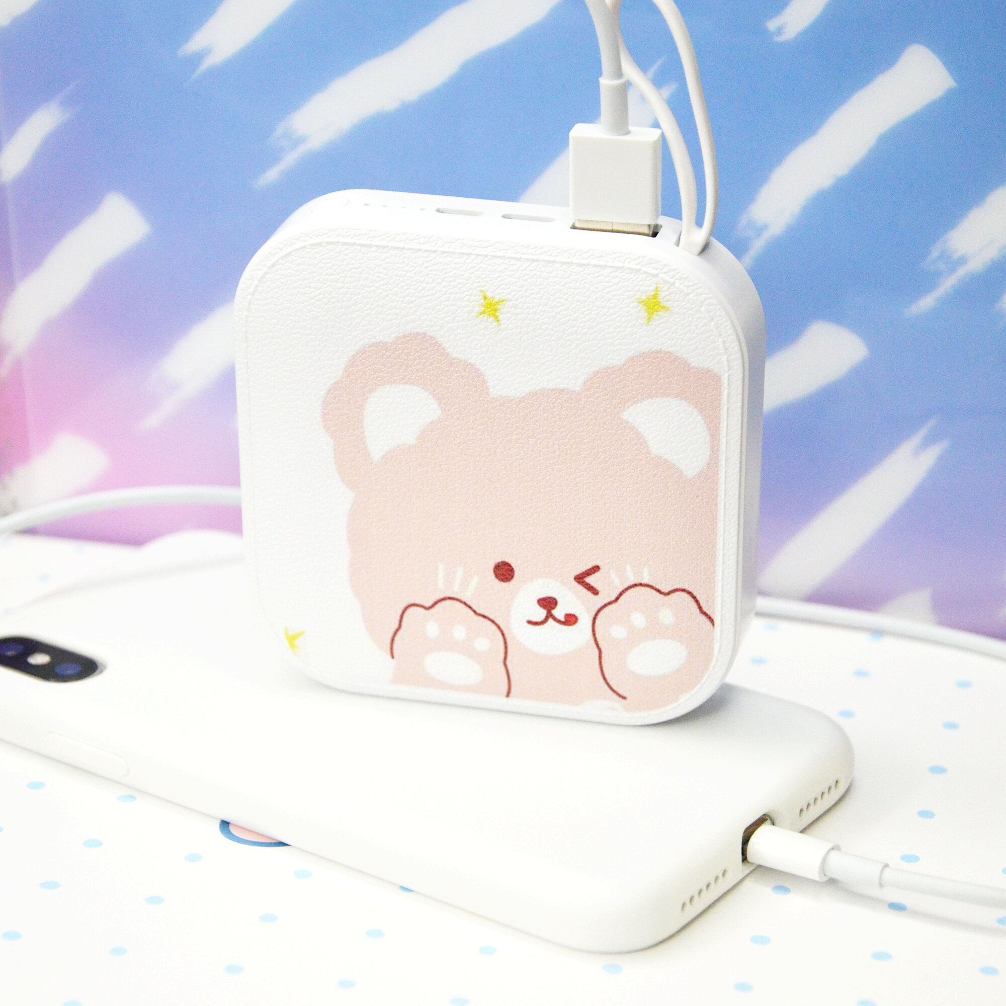 Повербанк с картинкой аниме Коричневый мишка, внешний аккумулятор детский, 10000 мА·ч, белый