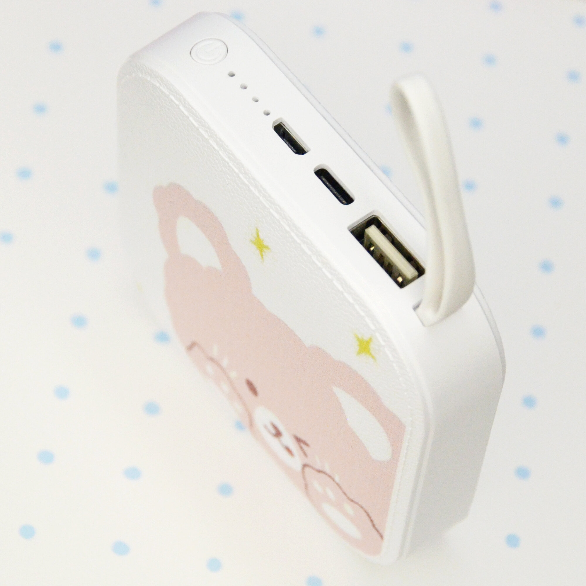 Повербанк с картинкой аниме Зайчик, внешний аккумулятор детский, 10000 мА·ч, белый