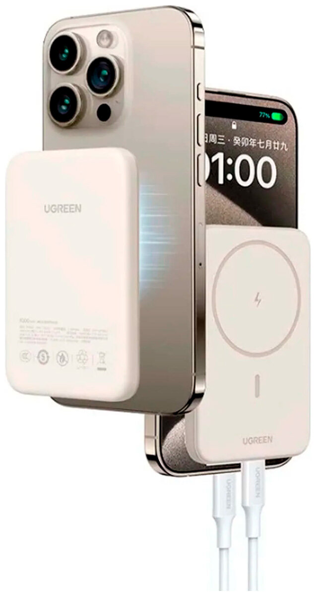 Внешний аккумулятор магнитный UGREEN PB561 (25208) 10000mAh, бежевый