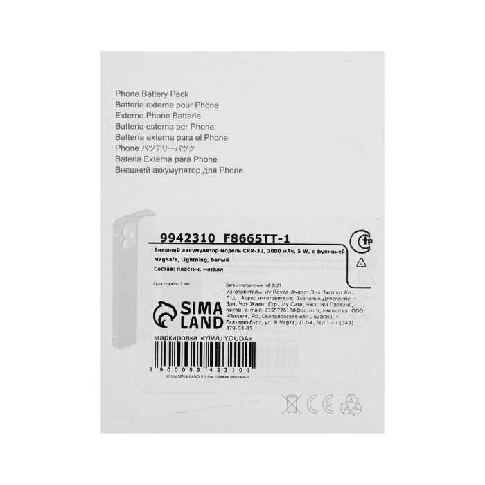 Купить Внешний аккумулятор CRR-32, 3000 мАч, 5 W, с функцией MagSafe, Lightning, белый