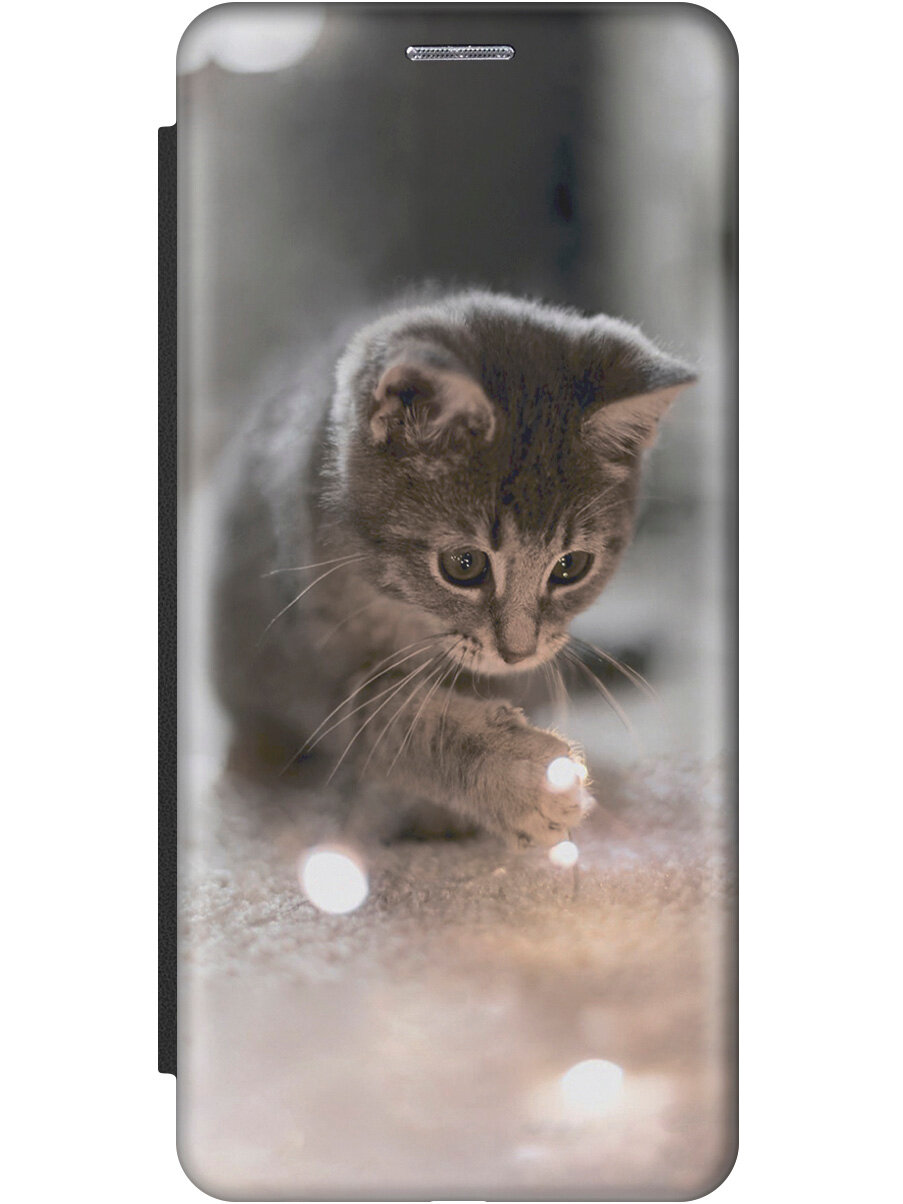 Купить Чехол-книжка на Xiaomi Redmi Note 8 Pro, Сяоми Редми Ноут 8 Про с 3D принтом "Котенок и свет" черный