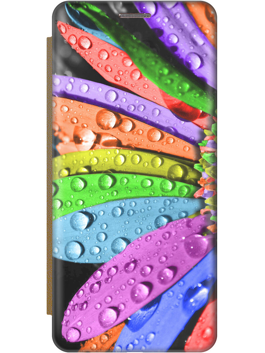 СохранитьЧехол-книжка на Xiaomi Redmi Note 8 Pro, Сяоми Редми Ноут 8 Про с 3D принтом "Разноцветные листья в каплях" золотой интересное:
