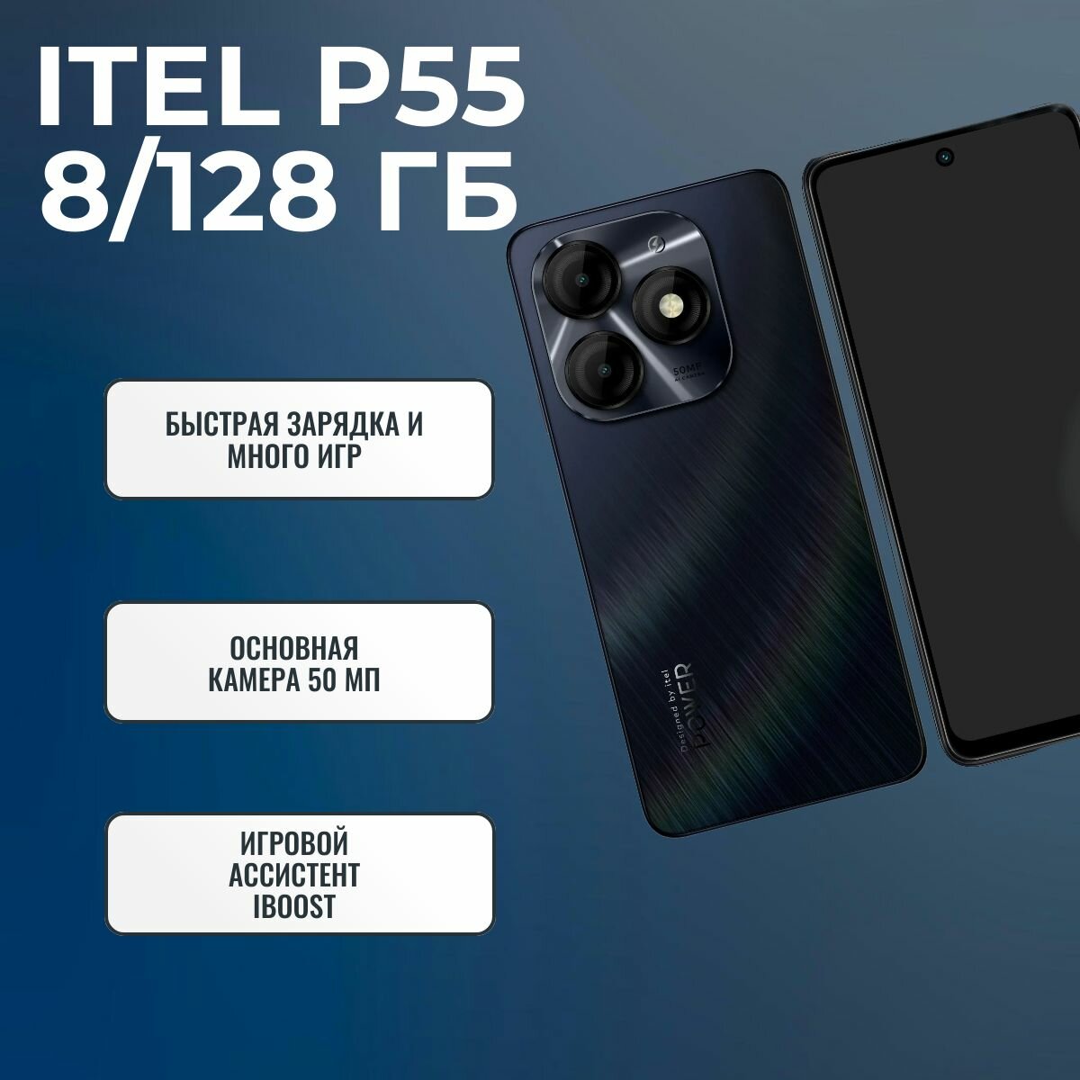 смартфон Itel P55 NFC 8ГБ + 128ГБ, Залитый лунным светом черный