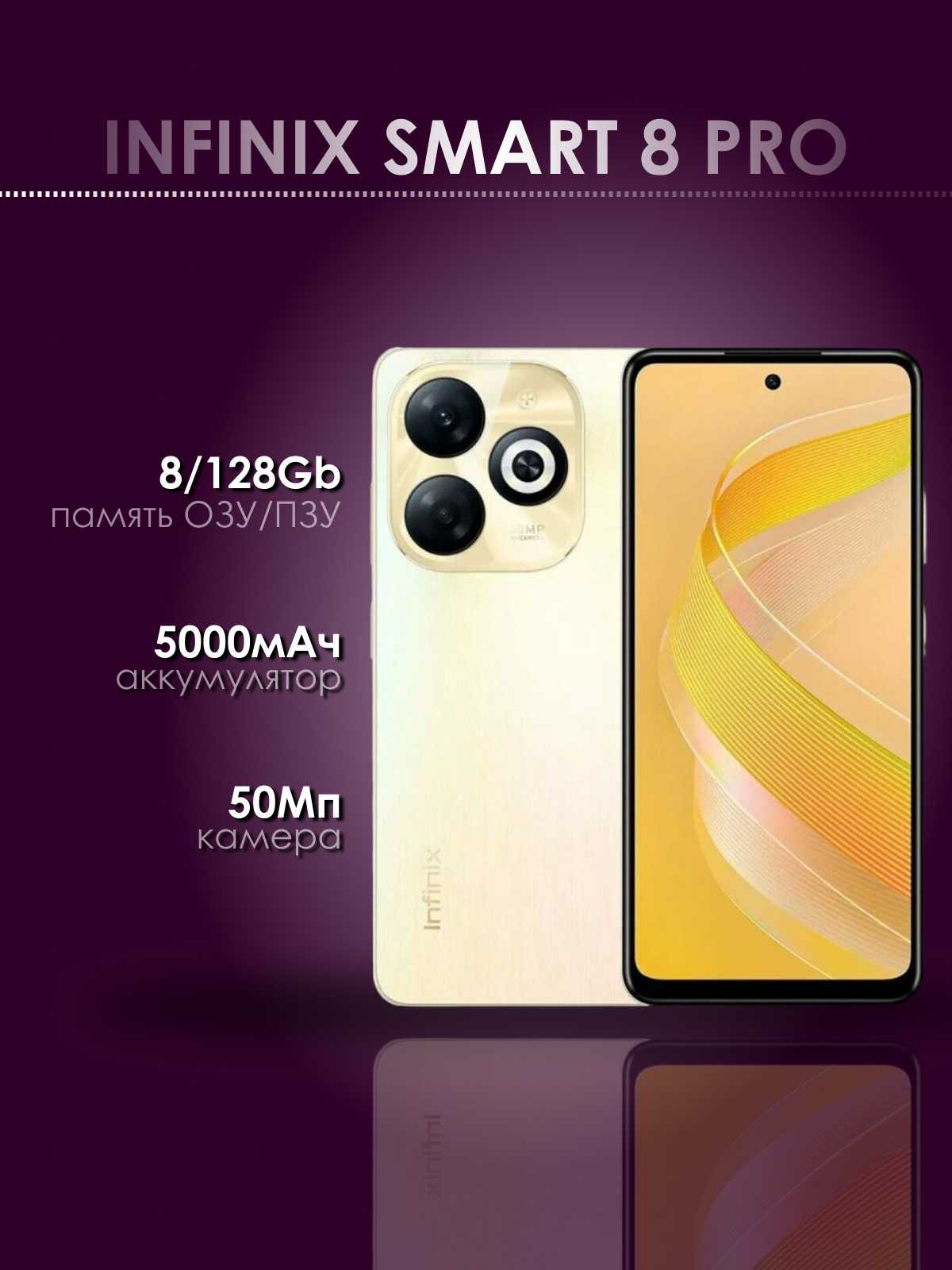 Смартфон Infinix Smart 8 Pro 8/128 ГБ Global для РФ, Dual nano SIM, shiny gold