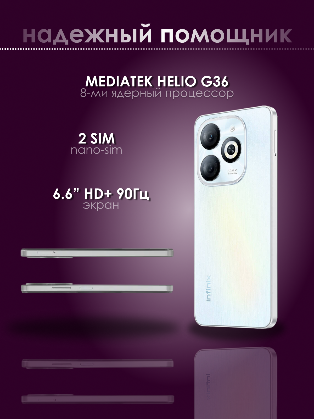 Смартфон Infinix Smart 8 Pro 4/64 ГБ Global, Dual nano SIM, Galaxy White
