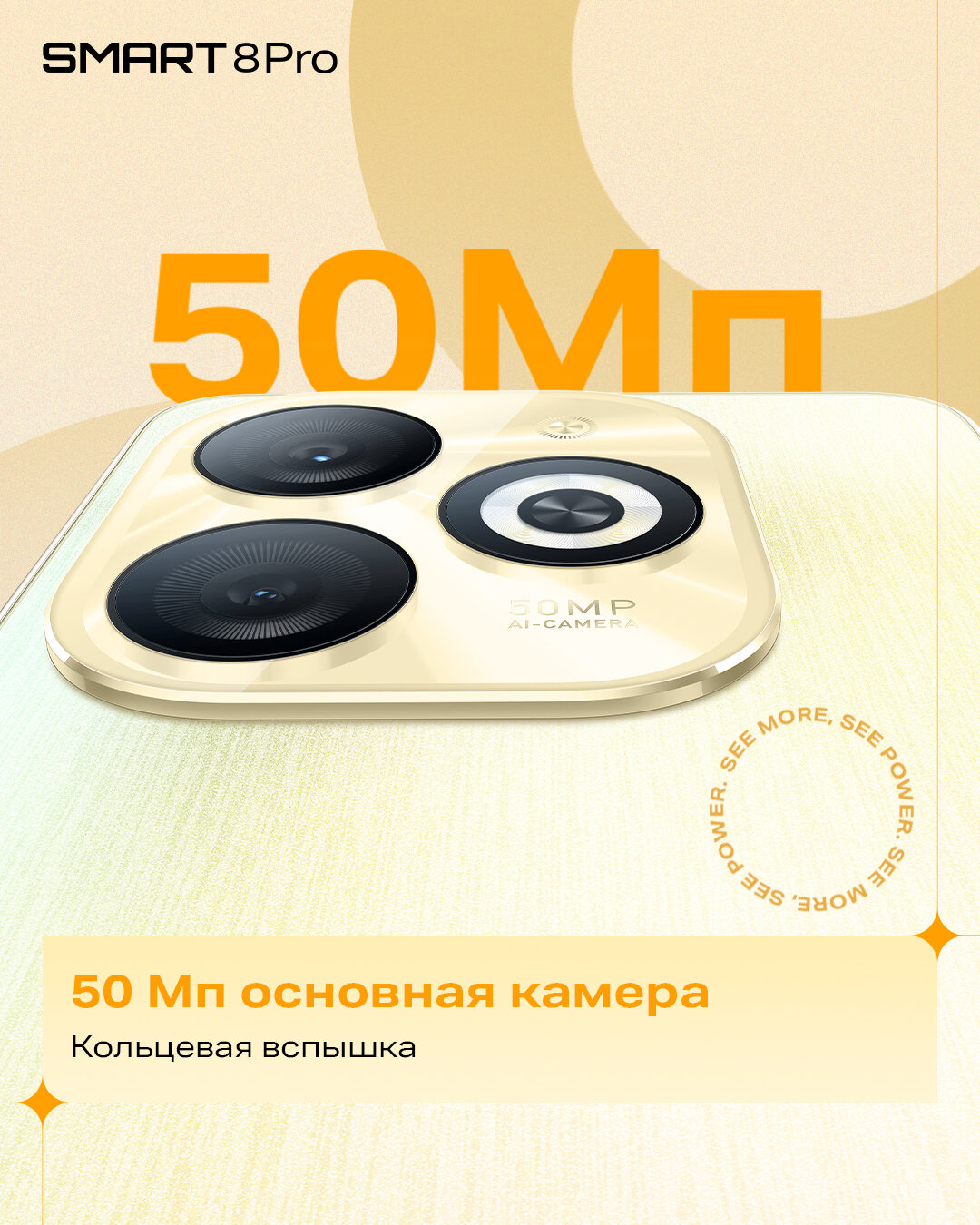 Смартфон Infinix Smart 8 Pro 8/128 ГБ Global для РФ, Dual nano SIM, shiny gold