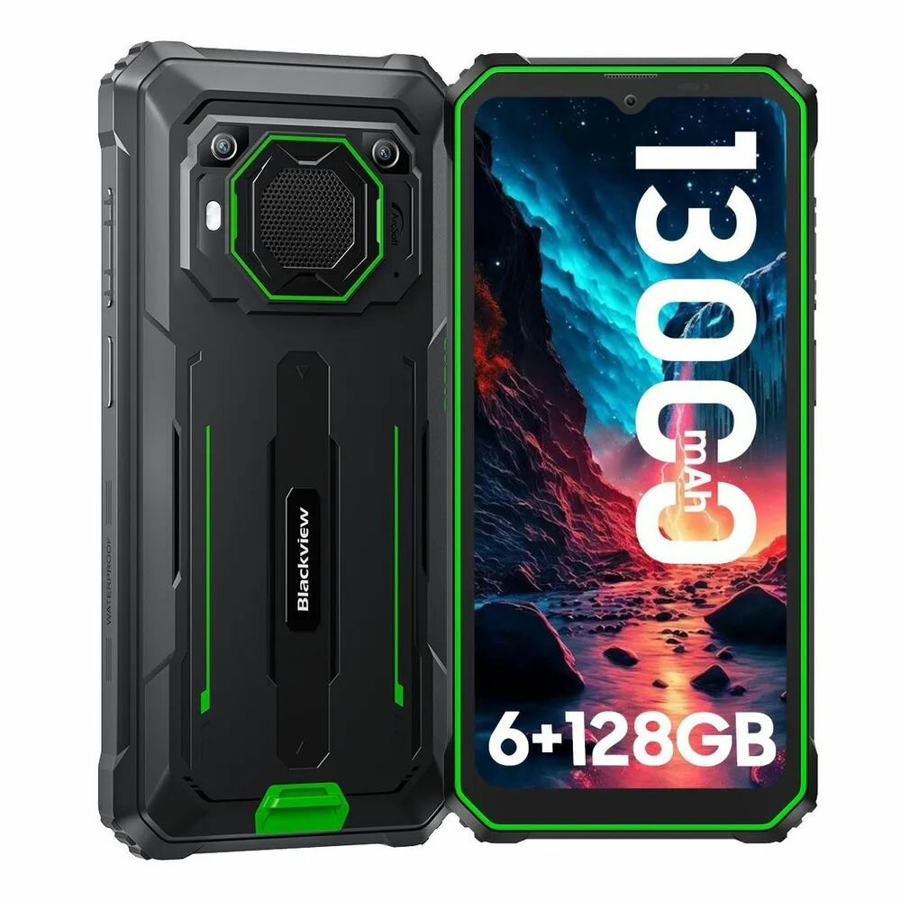Смартфон Blackview BV6200 Pro 6/128 ГБ, защищенный, Android 13, Dual SIM, 6,56 дюйма, ,13000 мАч, быстрая зарядка, зеленый