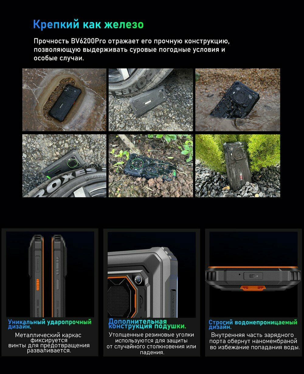 Смартфон Blackview bv6200 pro, 6/128ГБ, global, Blackview, bv6200 pro, Глобальная версия, Смартфон, Черный, 6ГБ, 128ГБ, global, Новый, 01.07.2023