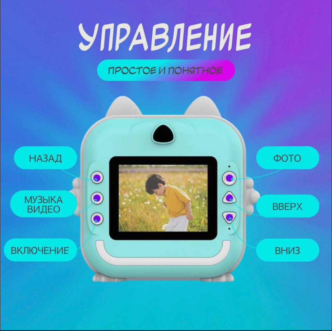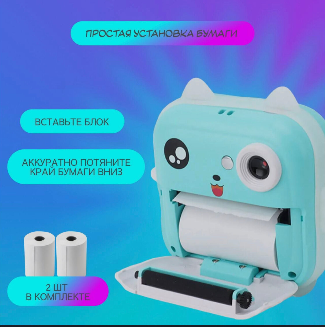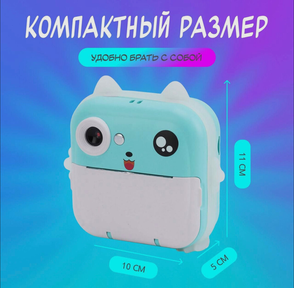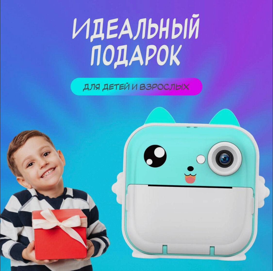Детский фотоаппарат с моментальной печатью Kid Joy, 200DPI, Bluetooth 5.1, поддержка приложения (Q5), синий цвет интересное: