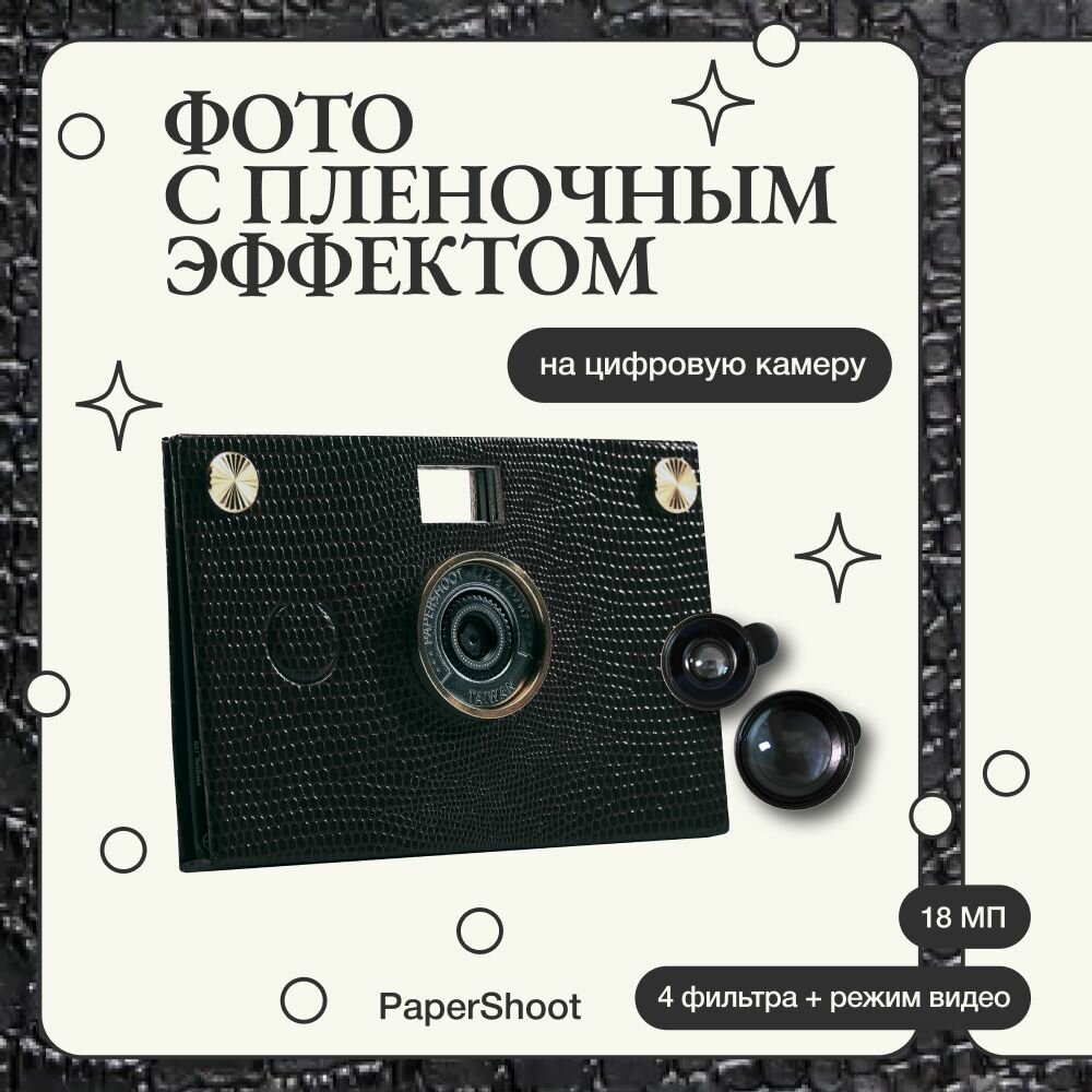 | Комплектация | В упаковке вы найдете: Материнскую плату камеры Кейс из эко-кожи Бумажный ремешок 2 крепежа (для соединения платы и кейса) из меди, 2 - из пластика SD-карта 32 Гб, 2 ААА-батарейки USB Type-C кабель (для зарядки и просмотра фото) 2 объектива (макро и широкоугольный) |