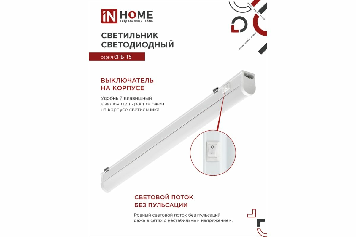 Светильник сд СПБ-Т5 10Вт 230B 4000К 900Лм 900мм IN HOME интересное: