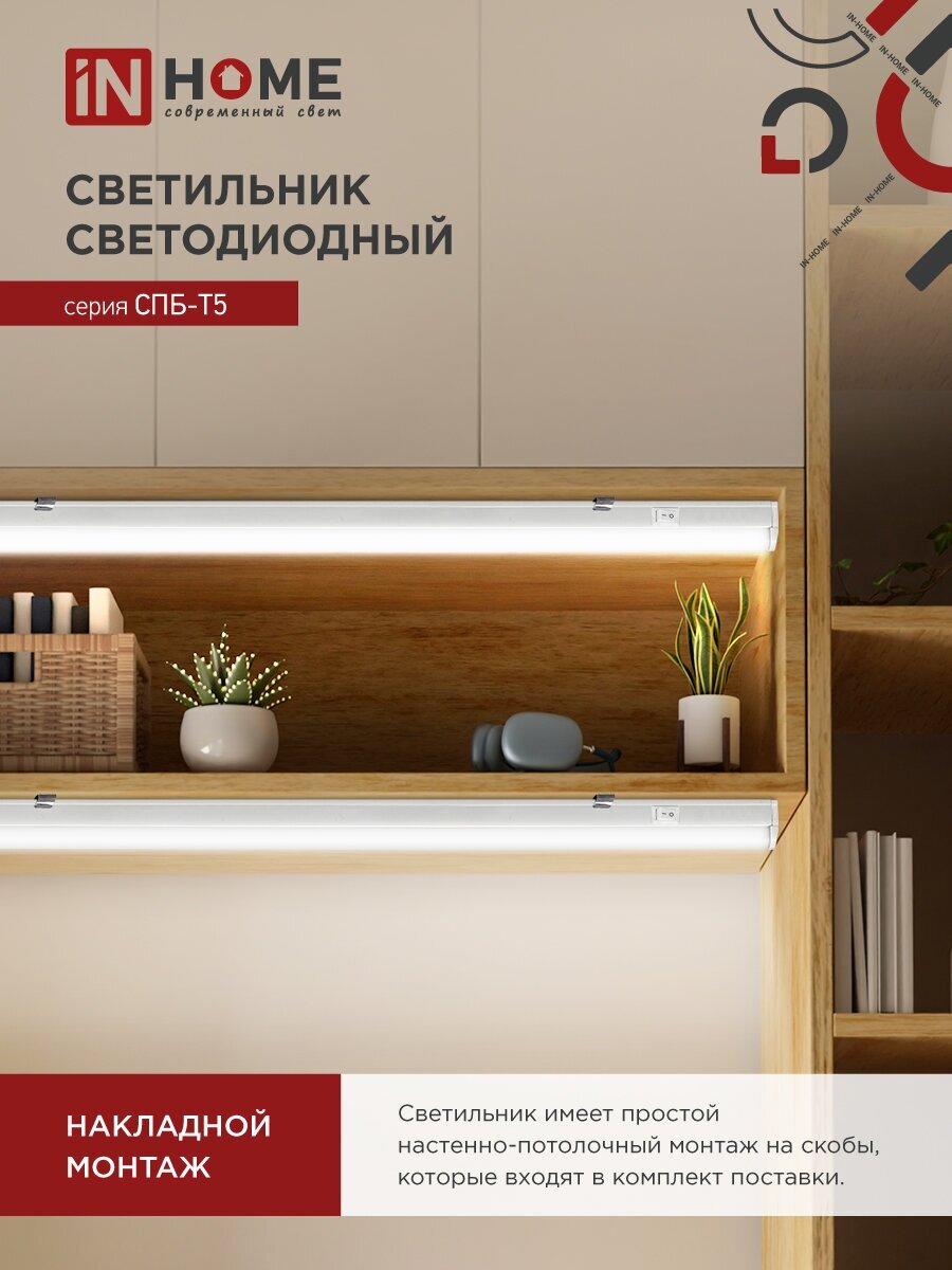 Светильник светодиодный IN HOME СПБ-Т5, 14 Вт, 230 В, 6500 К, 1260 Лм, 1200 мм