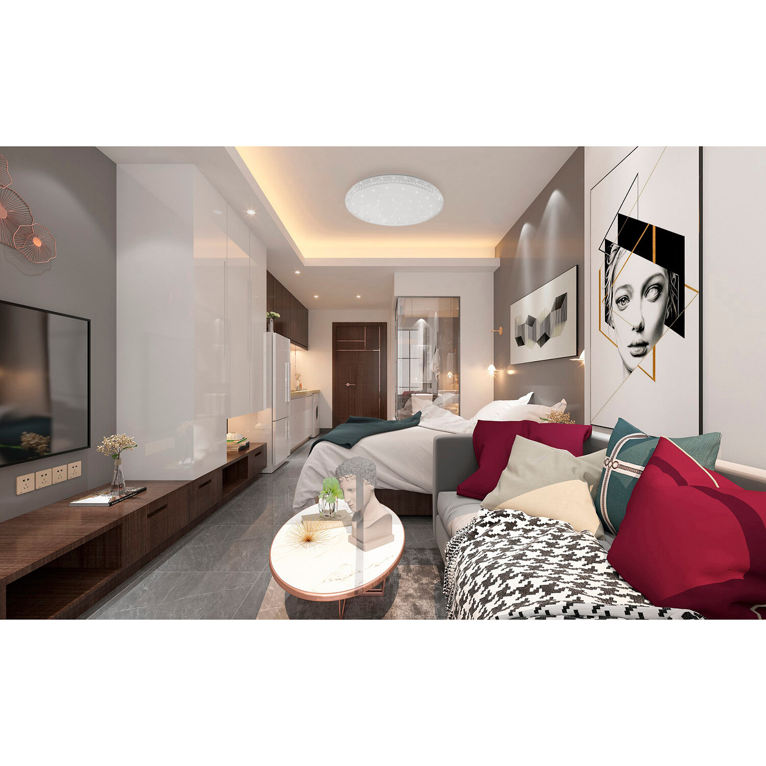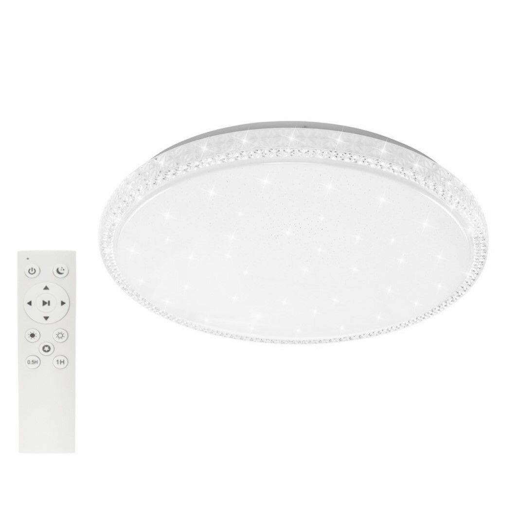 | Дополнительная информация | Смена цветовой температуры с теплого (3000К), на дневной (4000К) или холодный свет (6000К). Управление с помощью пульта ДУ. Режим ночника. Без пульсаций. Встроенные светодиоды, 30000ч. |
