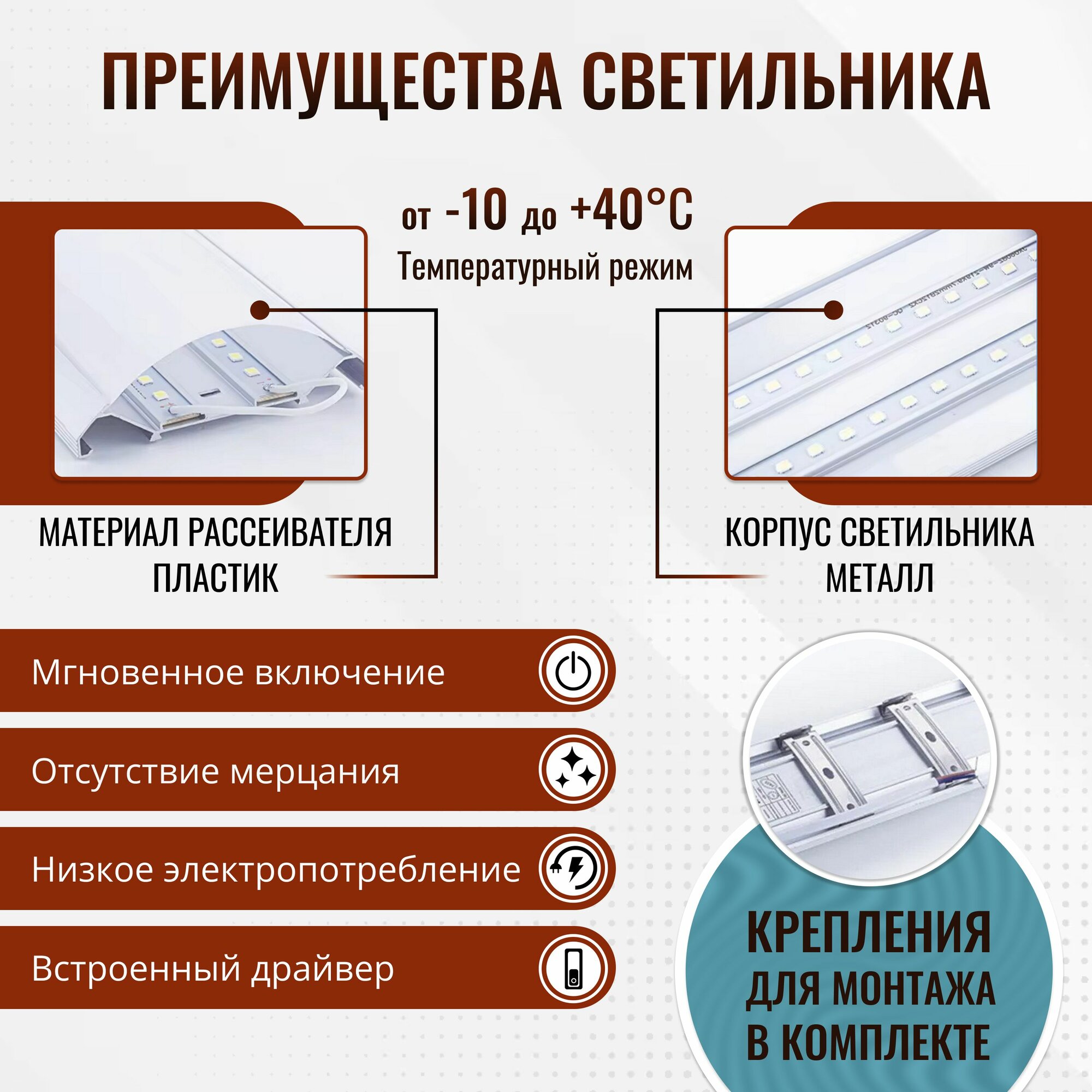 Светильник светодиодный линейный ЛюксЭл / 20Вт 600мм холодный белый свет 6000К / накладной потолочный светильник прозрачный интересное: