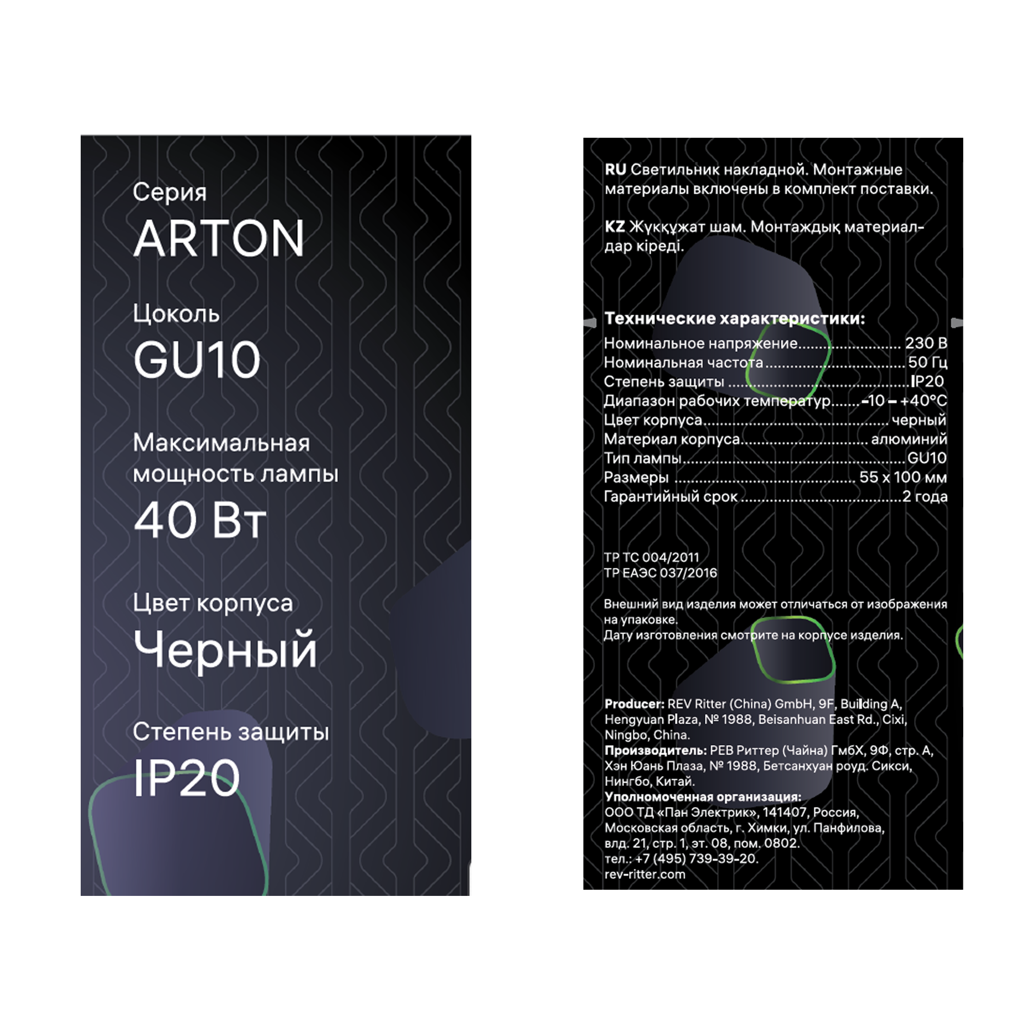 Спот поворотный точечный накладной Ritter Arton 59965 4 GU10 цвет черный интересное: