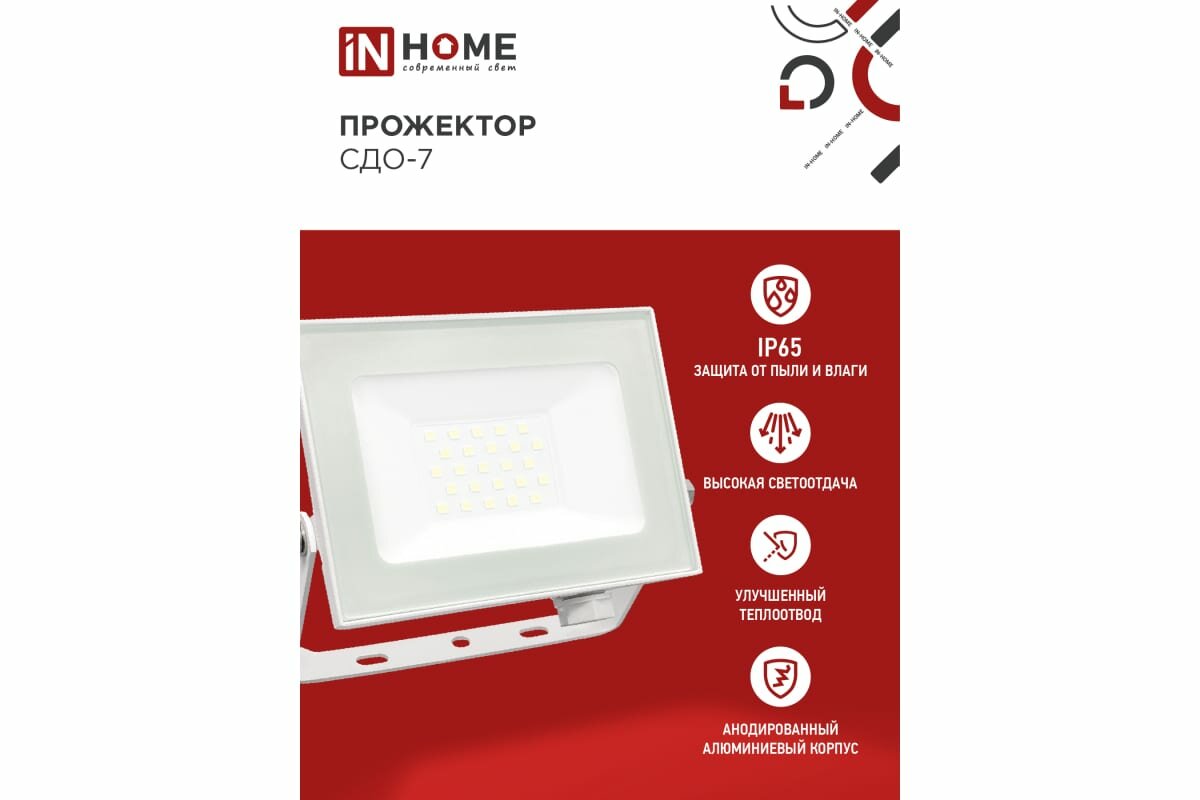 Прожектор светодиодный IN HOME СДО-7 20Вт 230В 6500К IP65 белый
