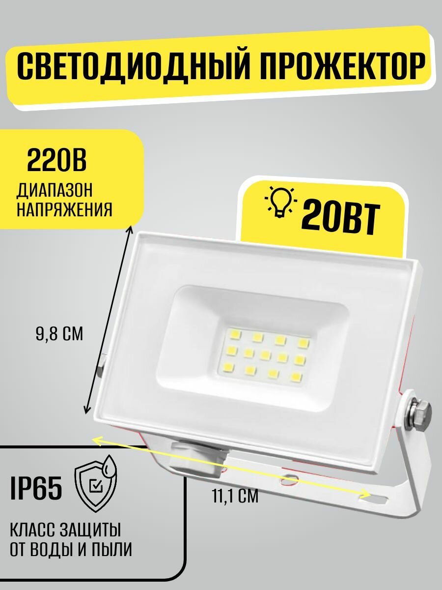 Прожектор светодиодный 20Вт, защита IP65, холодный свет, белый корпус In Home