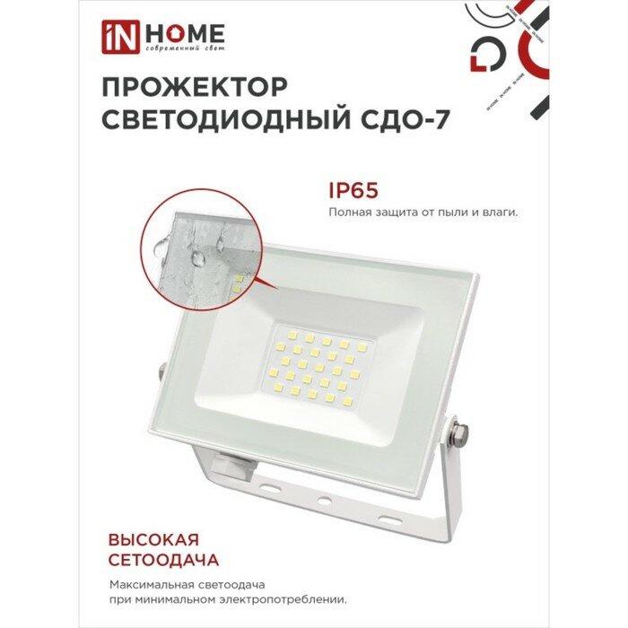 Прожектор светодиодный IN HOME СДО-7, 30 Вт, 230 В, 6500 К, IP65, белый