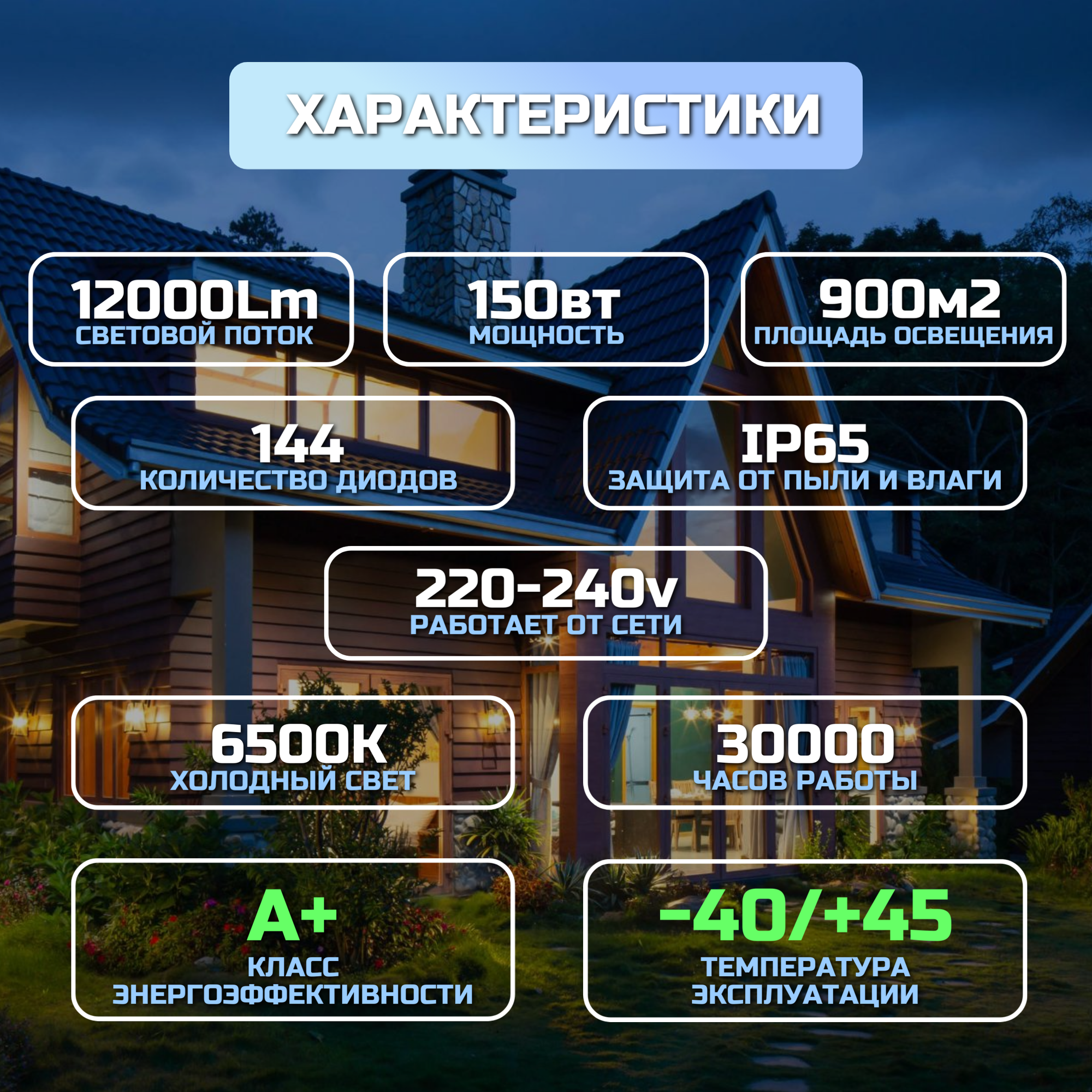 Прожектор светодиодный уличный 150вт / 12000Лм / 6500К интересное: