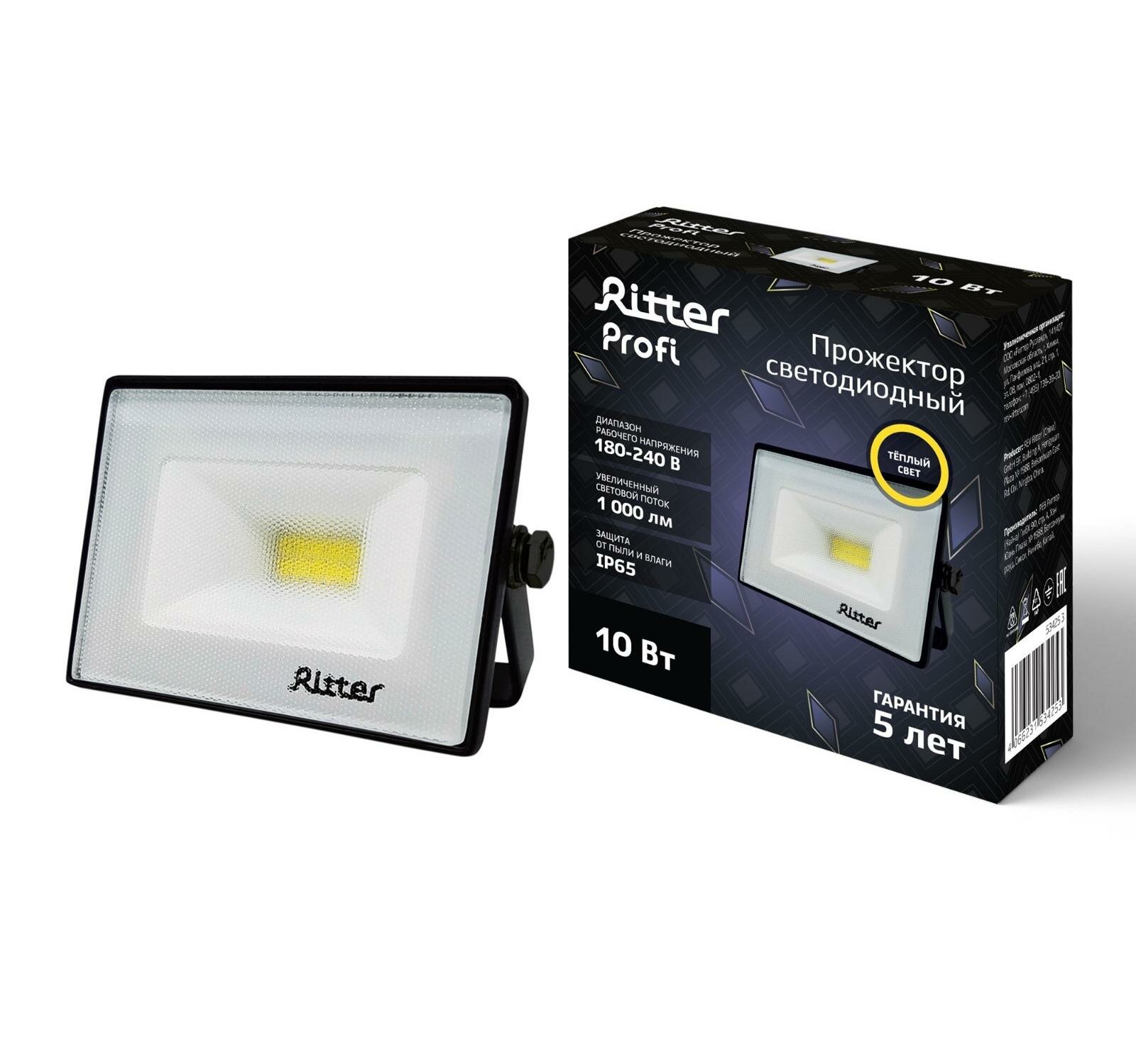 Купить Прожектор светод серия PROFI, 230В 10Вт 2700К 1000Лм IP65 черный, гарантия 5 лет 53425 3 Rit