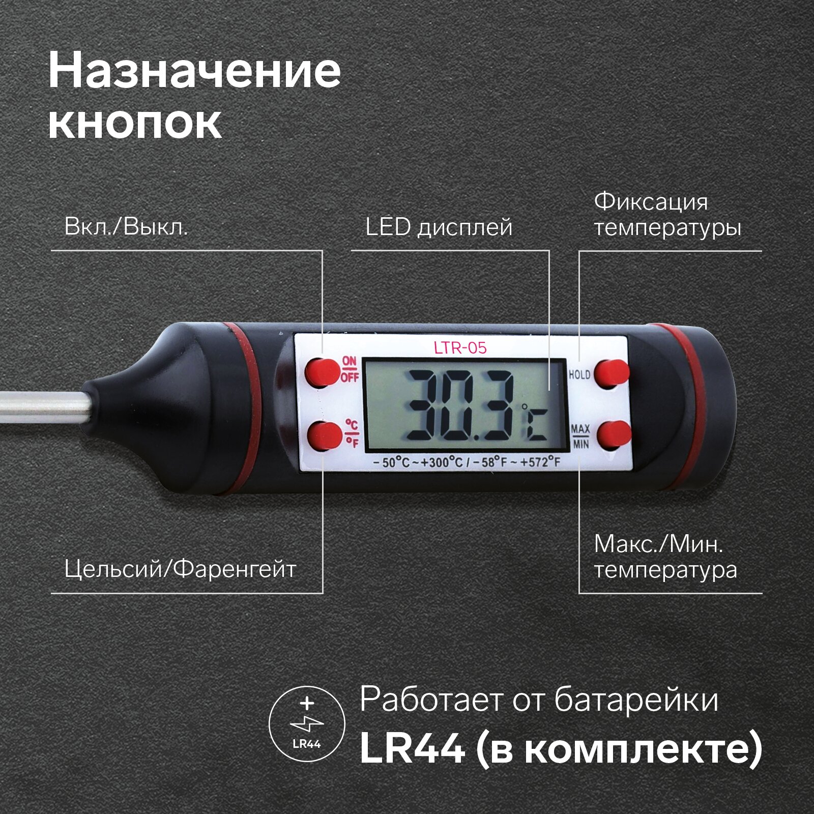 Термощуп кухонный Luazon LTR-05, max 300 °C, от LR44, чёрный (1шт.) интересное: