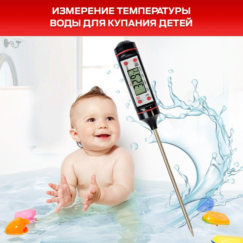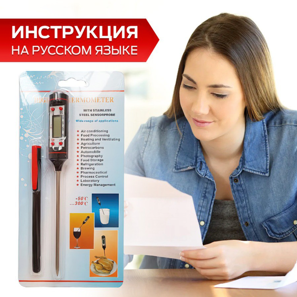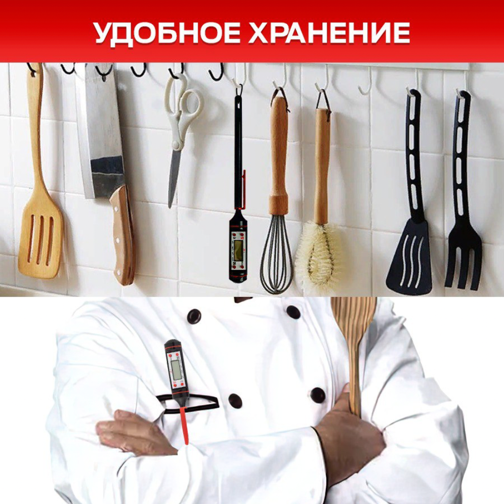 Кулинарный термометр электронный со щупом из нержавеющей стали, термометр для еды, мяса, вина, провод 1 метр / таймер кухонный