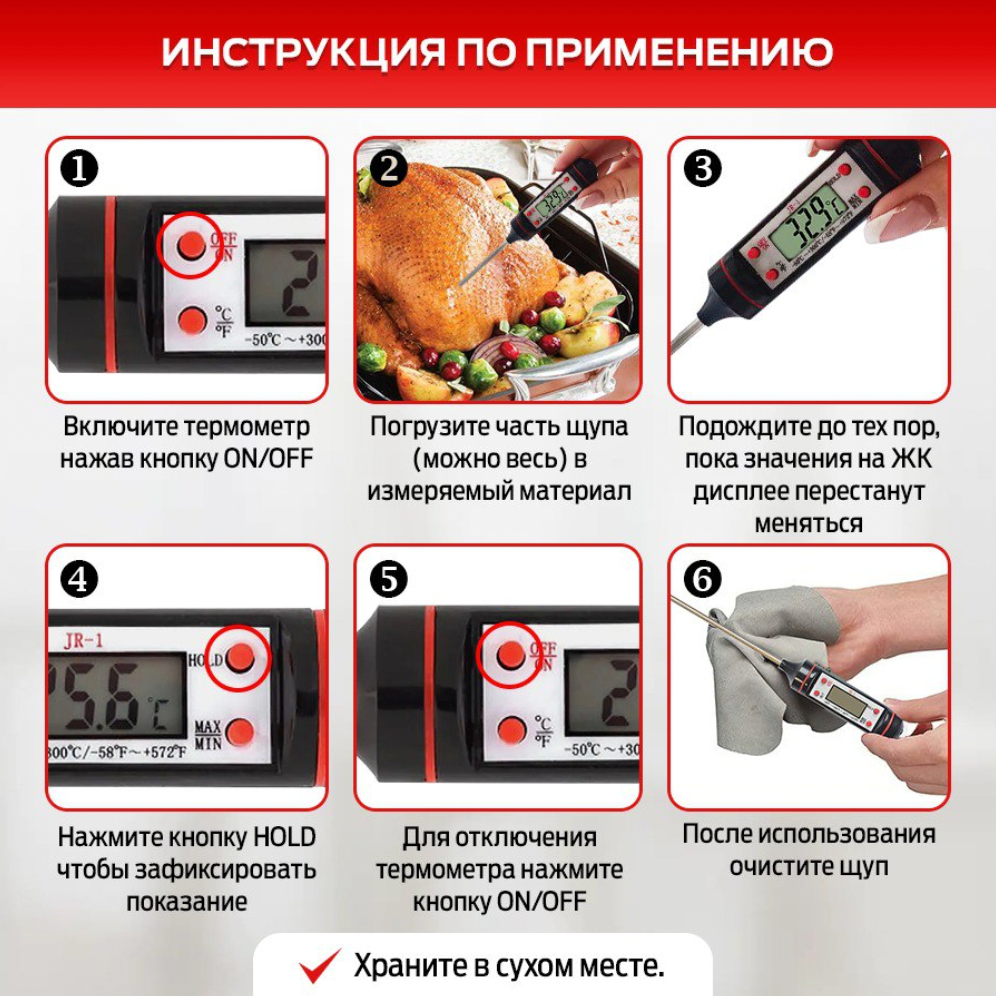 Ниже Вы можете прочитать отзывы на Кулинарный термометр с щупом, JR-1, ознакомится с подробными характеристиками, посмотреть интересные обзоры и фотографии на Кулинарный термометр с щупом, JR-1.