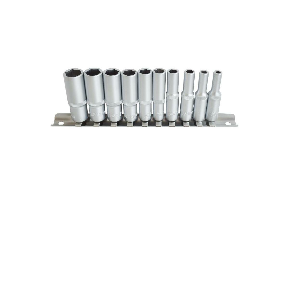 Купить Набор головок торцевых 1/4 DR (4-13 мм) (10 предметов) глубокие на держателе AVS NG14-10MD