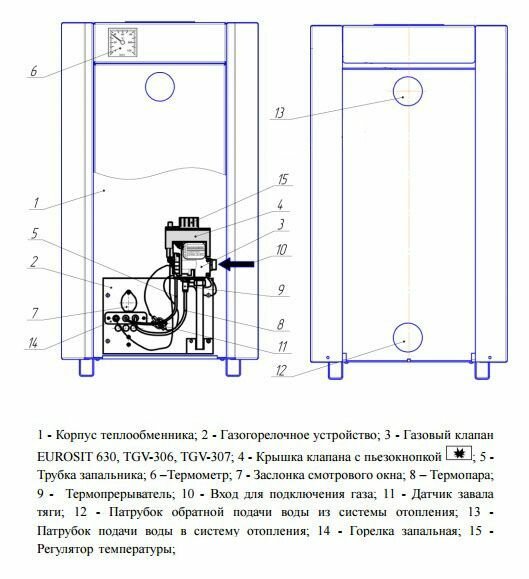Котел напольный газовый ЛУЧ КСГВ-12 (d120) открытая камера сгорания интересное: